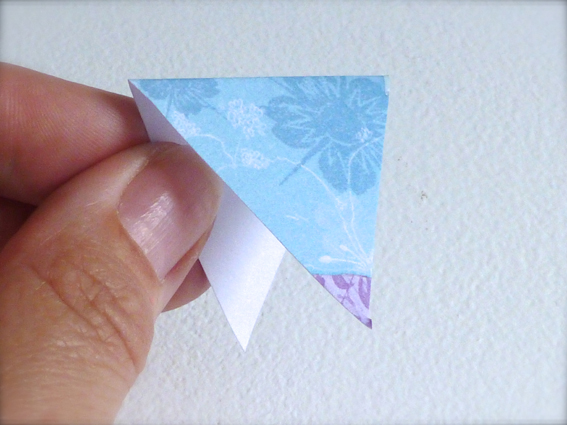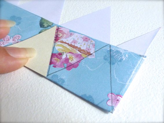 6. Paste a small amount of glue onto the inside of your bunting pennant, hang over the string and press together.