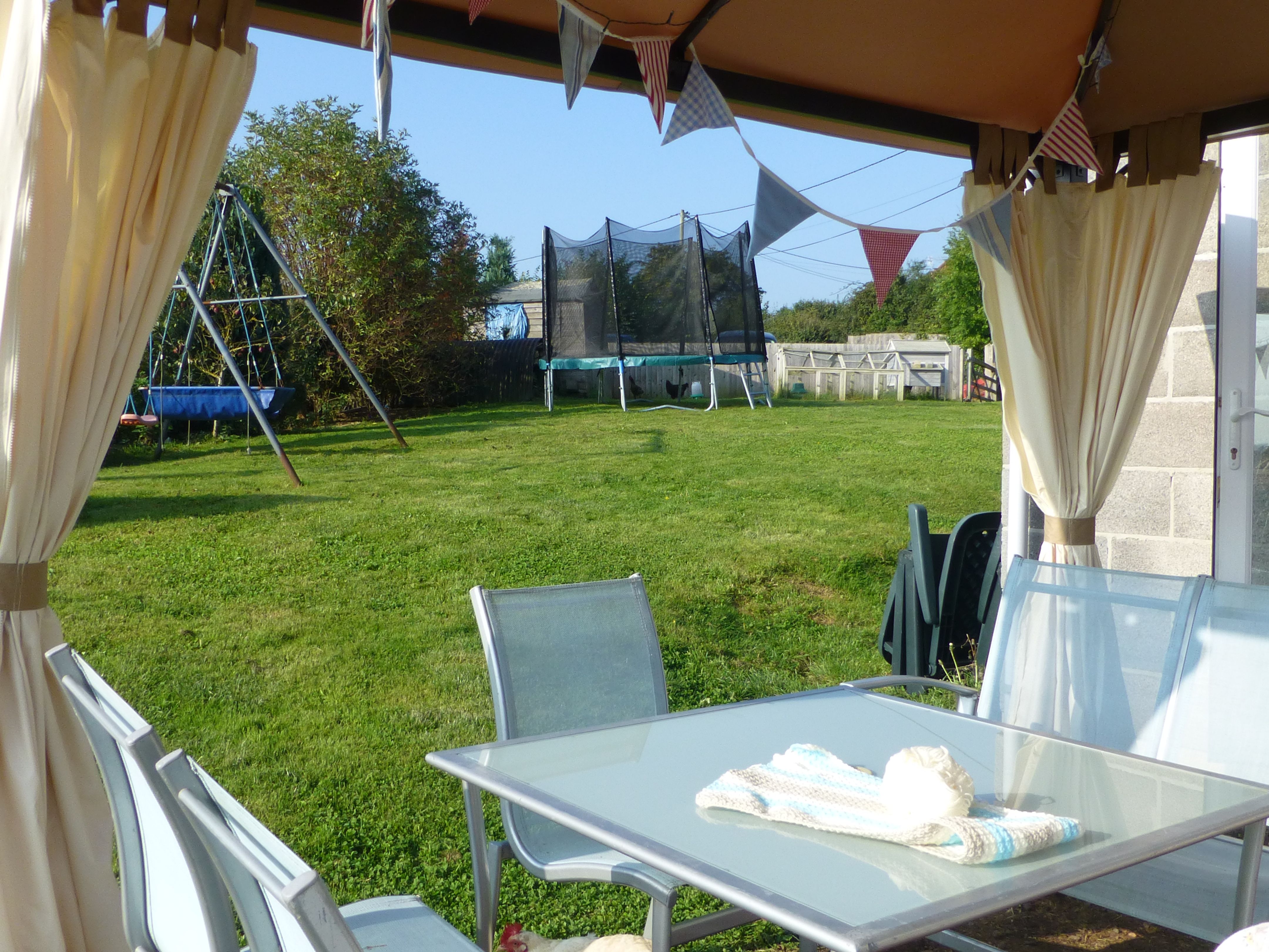 We upgraded to a permanent gazebo after the cheap one kept blowing over into the field at the first hint of a breeze! Great investment – we even sleep under it:)