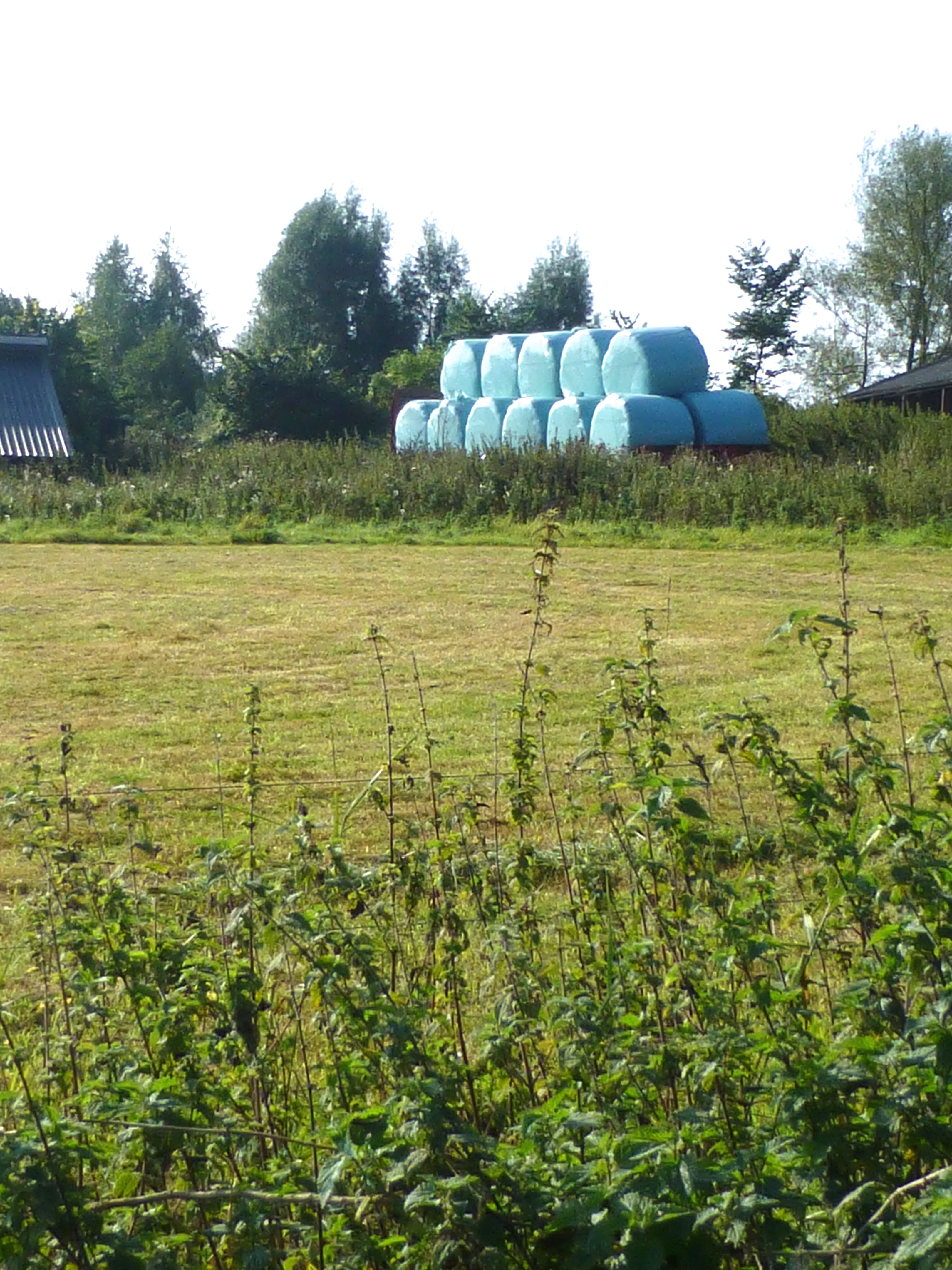 They have just baled the second lot of hay this year and, I don’t know about you, I rather miss the old way of baling. Somehow the green polythene wrapping that farmers prefer nowadays isn’t as aesthetically pleasing is it?