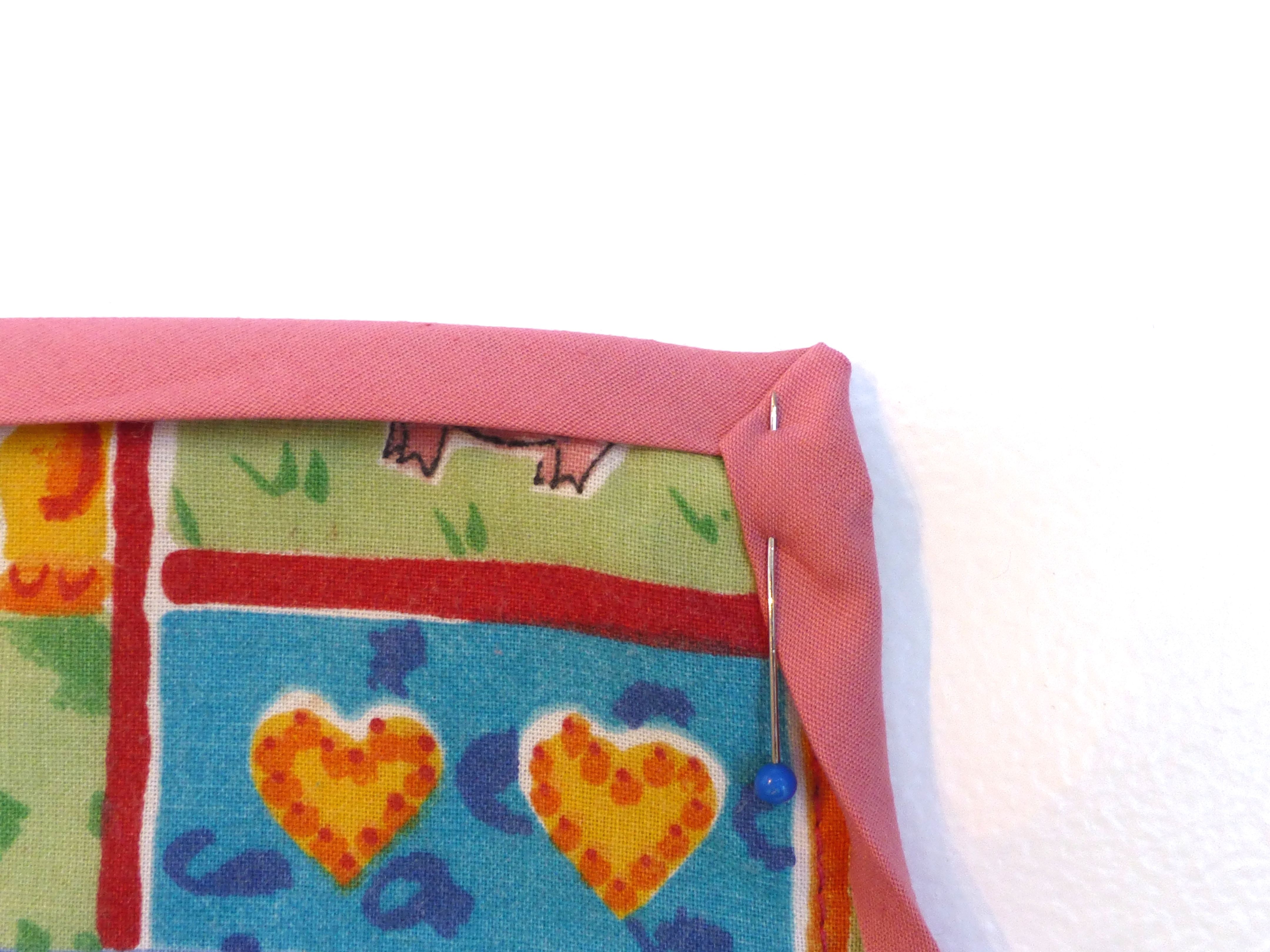 4. Fold the pocket up 7″, pin in place then baste down the sides.