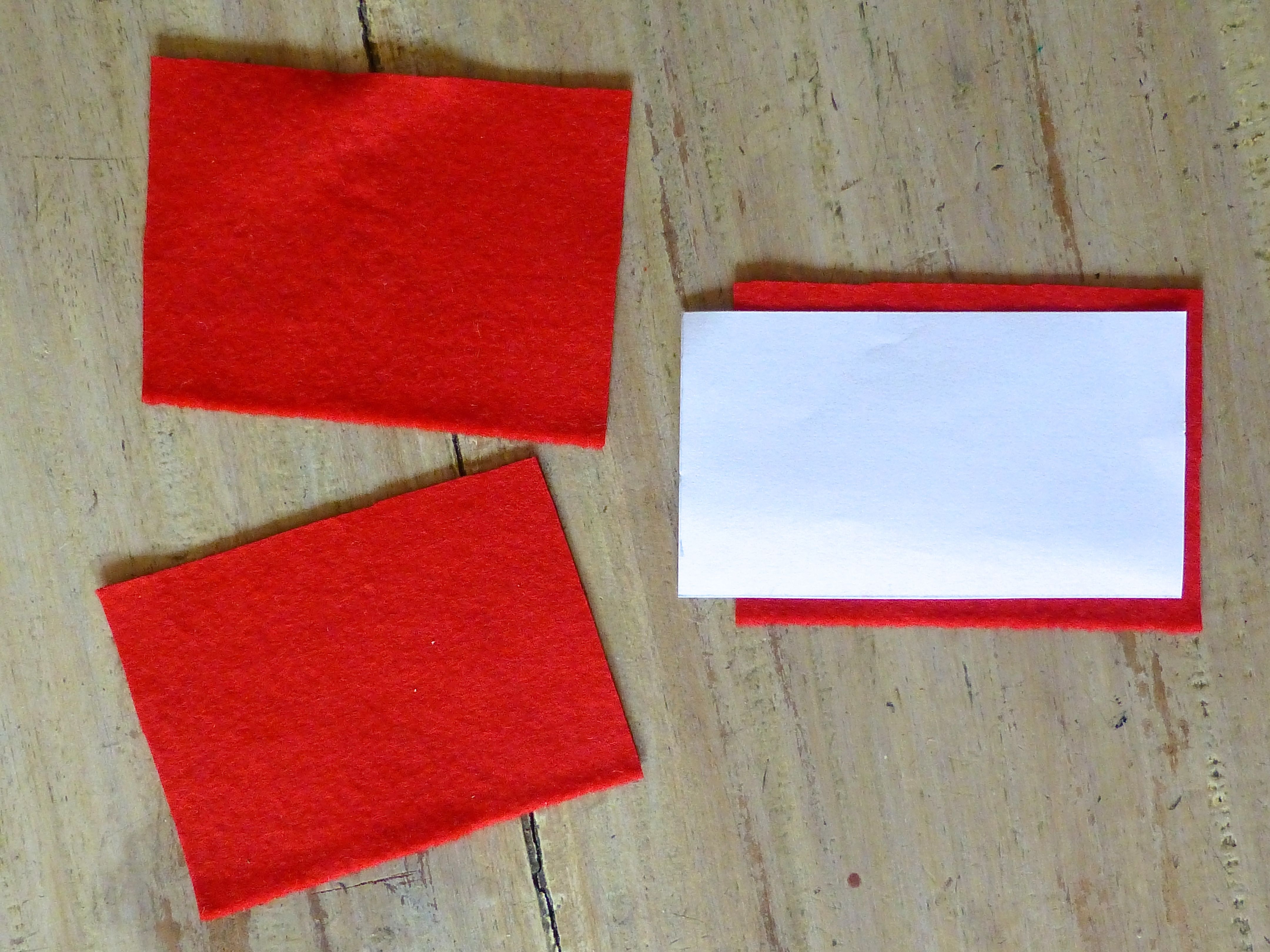 From red felt, cut twenty-four rectangles to form the pockets, each one 6cm x 8cm.
