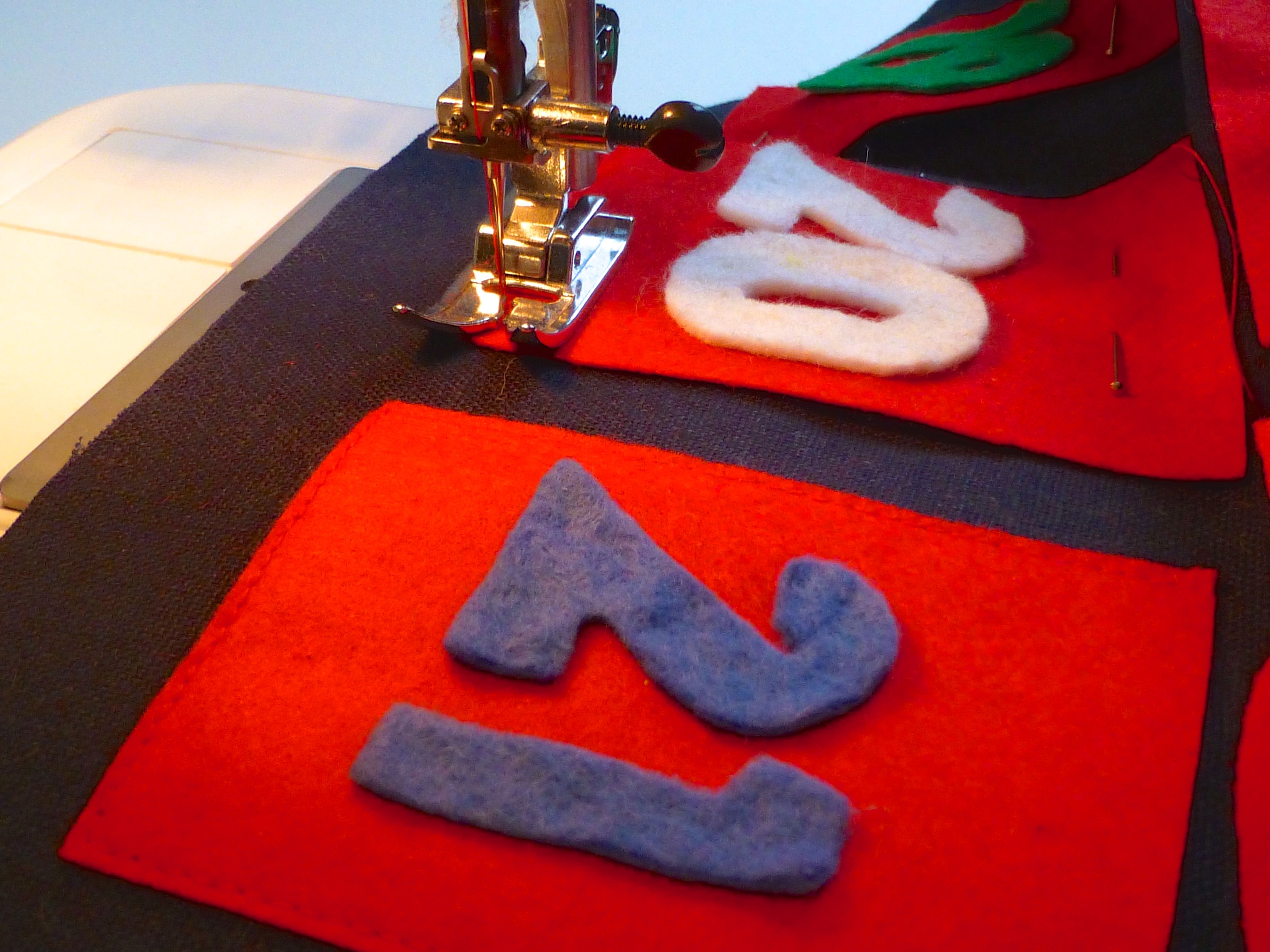 For everything else I used felt as it doesn’t fray so there is no need to hem the edges. You could use cotton from your stash and hem all four sides before sewing onto the calendar, but make sure you choose a thin fabric to keep the bulk down to a minimum.