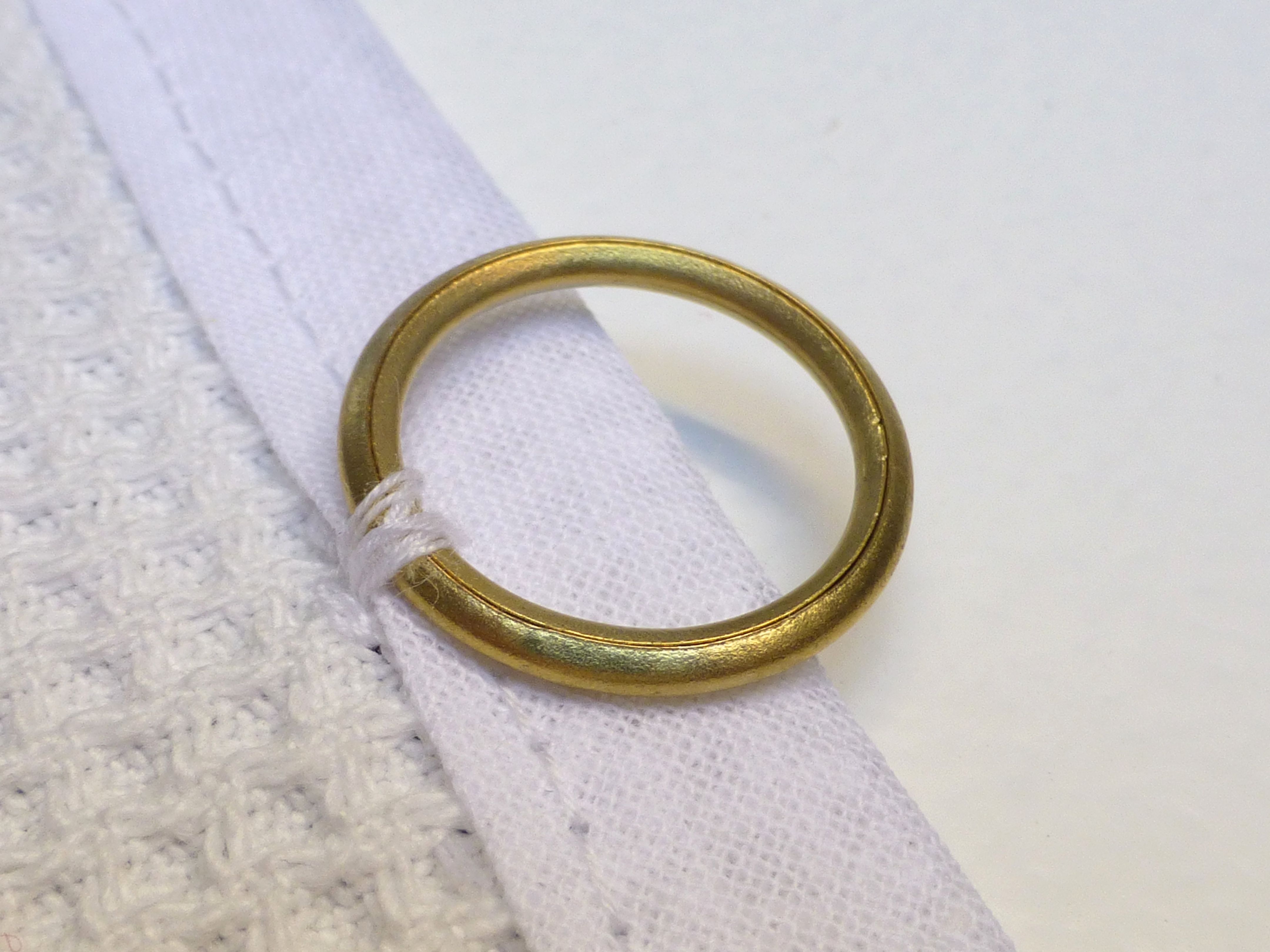 Attach two brass curtain rings to the back of the calendar, about 15cm in from each side.