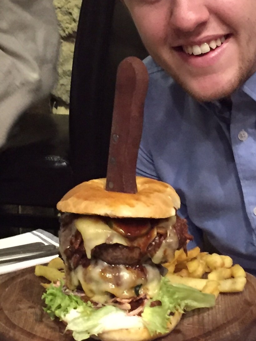 9. Daughter’s boyfriend managed to actually eat every last morsel of this ENORMOUS double burger!