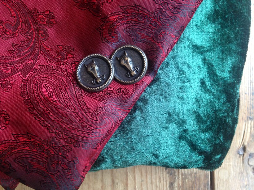 6. My latest project for the Minerva Crafts Blogger Network – a bottle green crushed velvet coat with dark red Paisley lining and horse head buttons. Nothing run-of-the-mill about this!