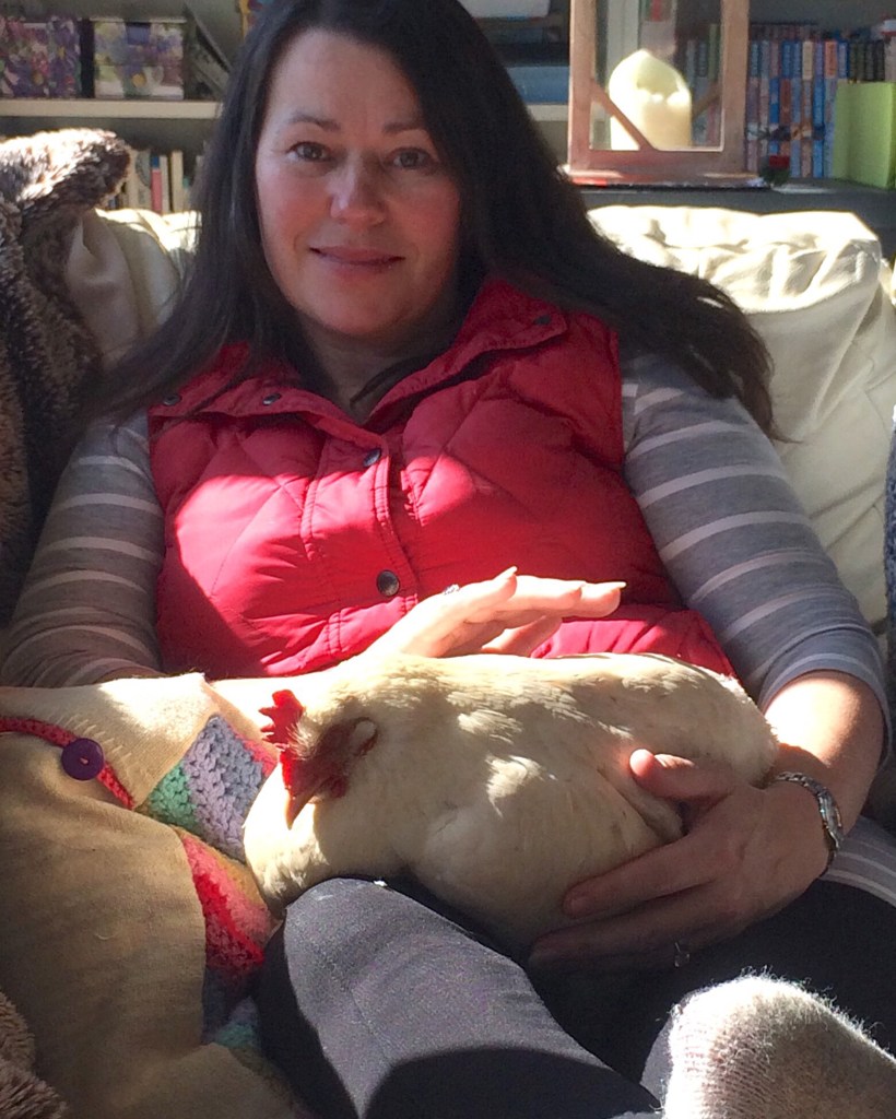 4. My favourite hen, Amber, was weak and not her usual confident self and all the hens were bullying her again, so we brought her into the house to live whilst she regained her strength.