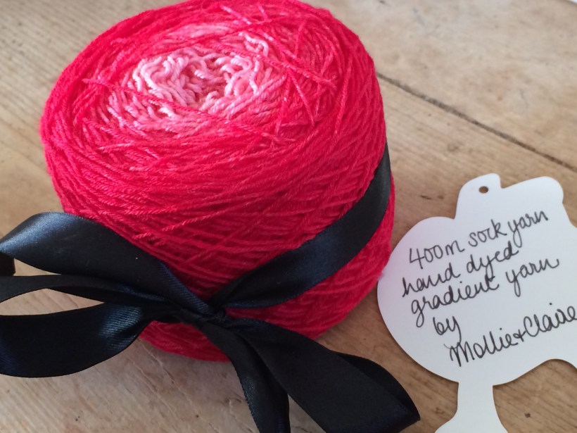I must admit that I went straight for the one that looked like it might contain the hand dyed yarn that Claire had not-so-subtly hinted at previously. Dyed with her own fair hands, Claire had even caked the skein for me so it is ready for use. It’s utterly gorgeous – 400m of sock yarn in the perfect shade of pink, which may become a shawl or socks. I’ll take my time deciding what to make with it as I want to make sure it gets plenty of use.