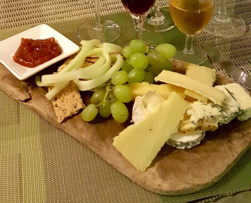 As we’d saved ourselves for dinner again by not having lunch, we were ready to demolish all that was laid in front of us that evening, including these five local cheeses.