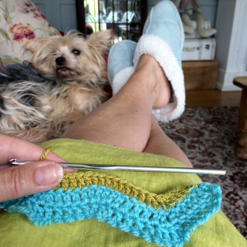 11. I started a ‘scrappy’ blanket, unwittingly choosing the same colours as I was wearing. Hopefully, this will be another Christmas present, this one costing nothing but my time.