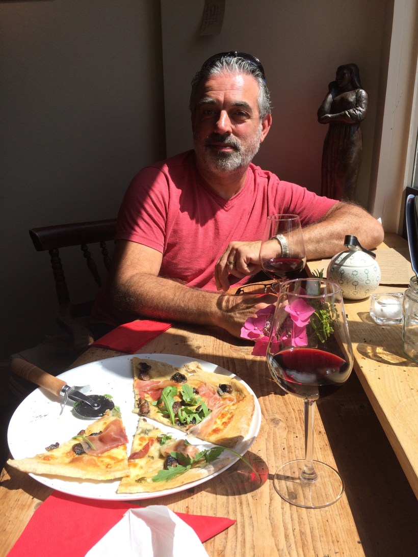 12. After a trip to the dentist, The Husband felt like a glass of wine to cheer himself up. We shared a pizza fresh from the in-house pizza oven.