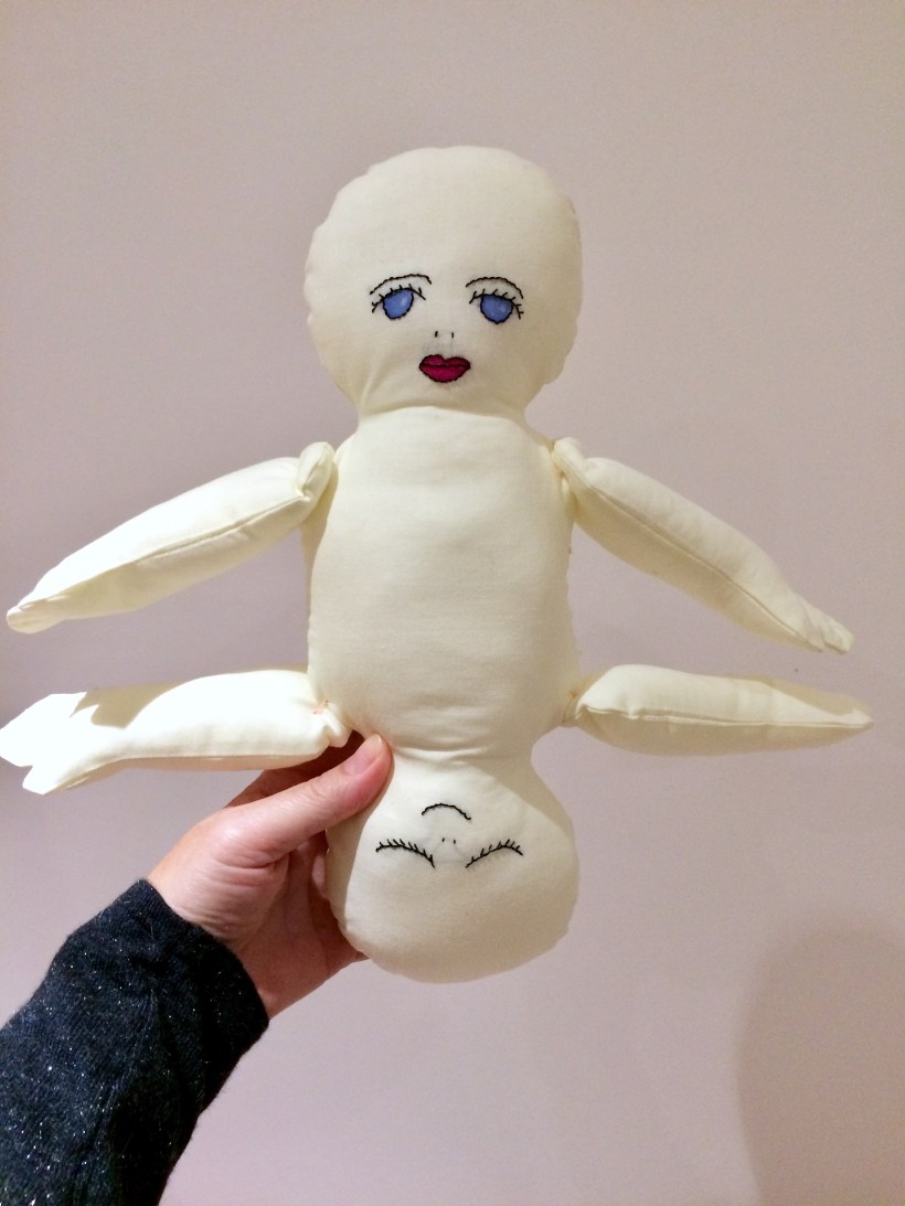 When the body is assembled and stuffed, at this stage it looks a bit like Frankenstein’s experiment!