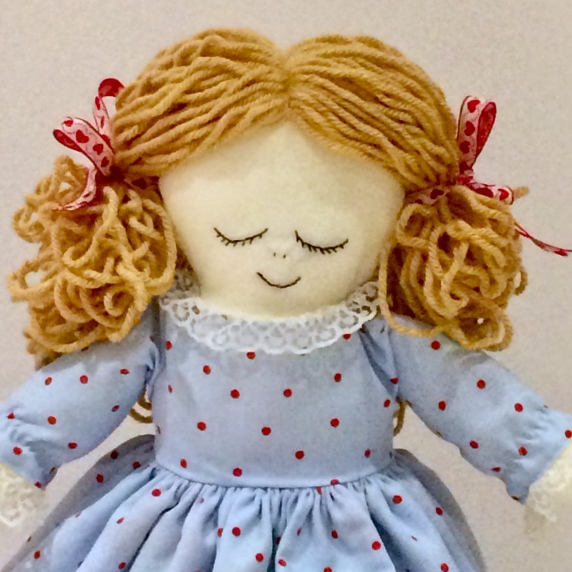 The bedtime doll had her hair in bunches held with some red heart ribbon.