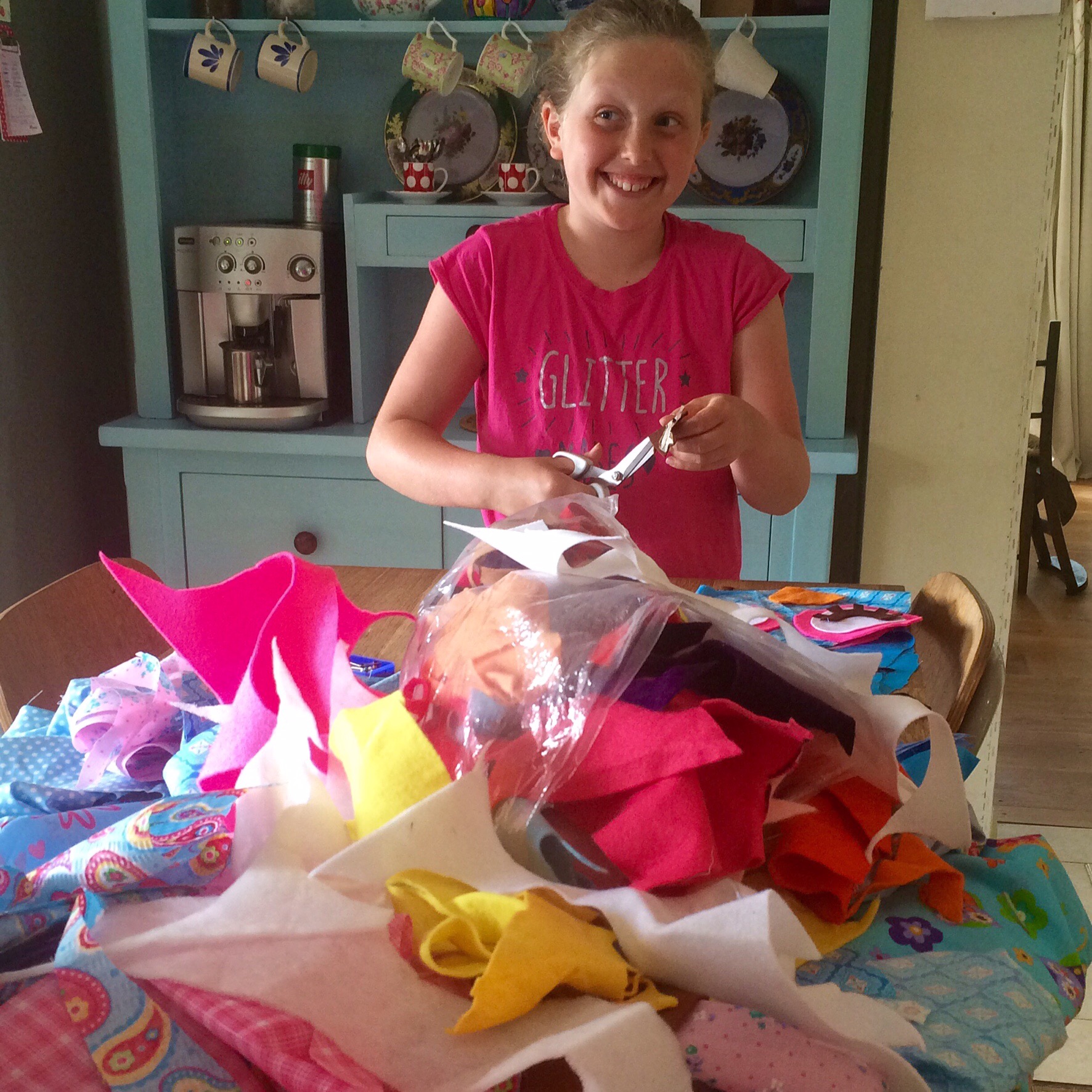 3. The students love choosing their own combination of fabrics to make their creations unique. It started with piles of neatly folded fabric but, within seconds of excited rummaging, descended into this chaotic heap!