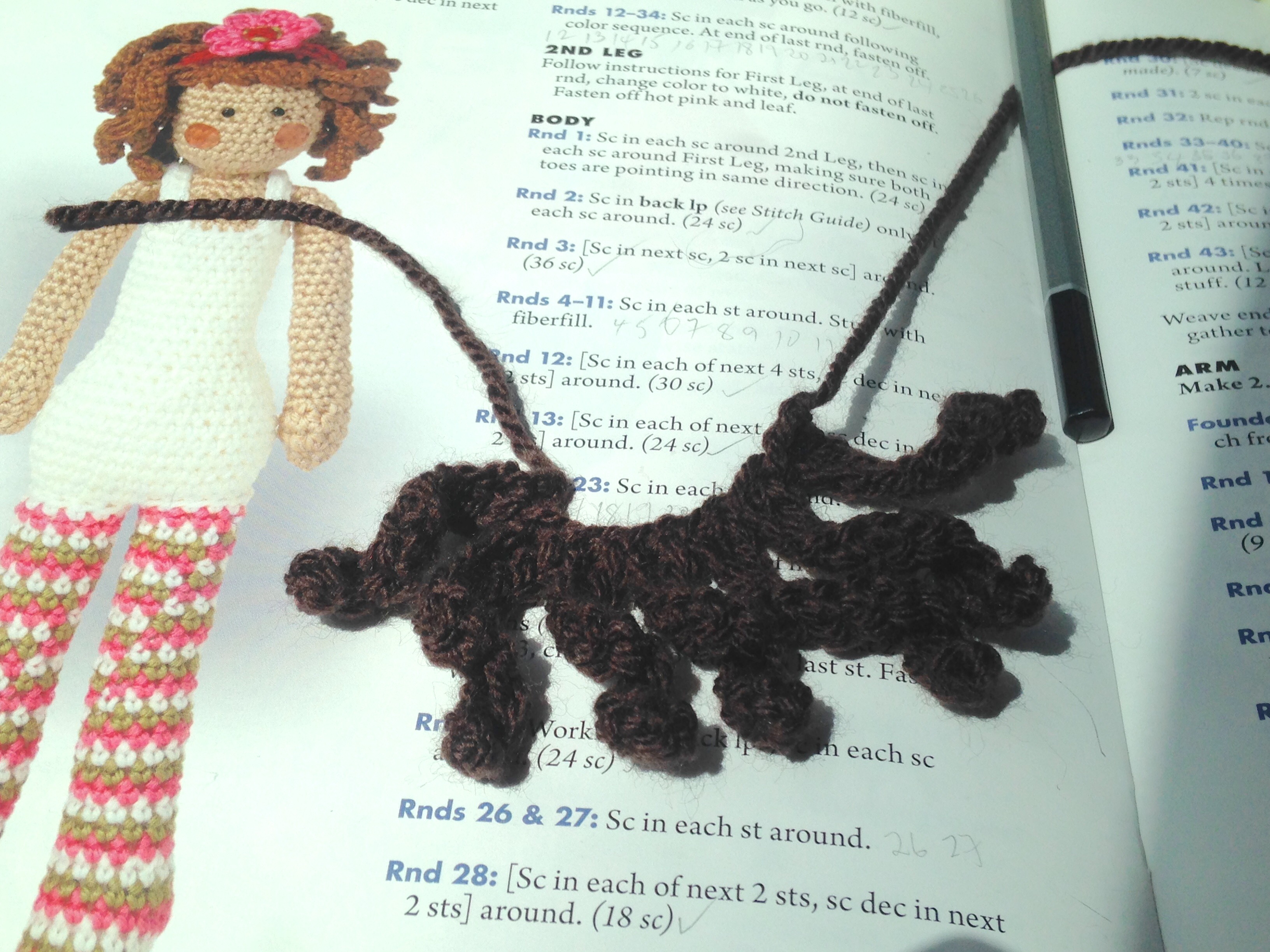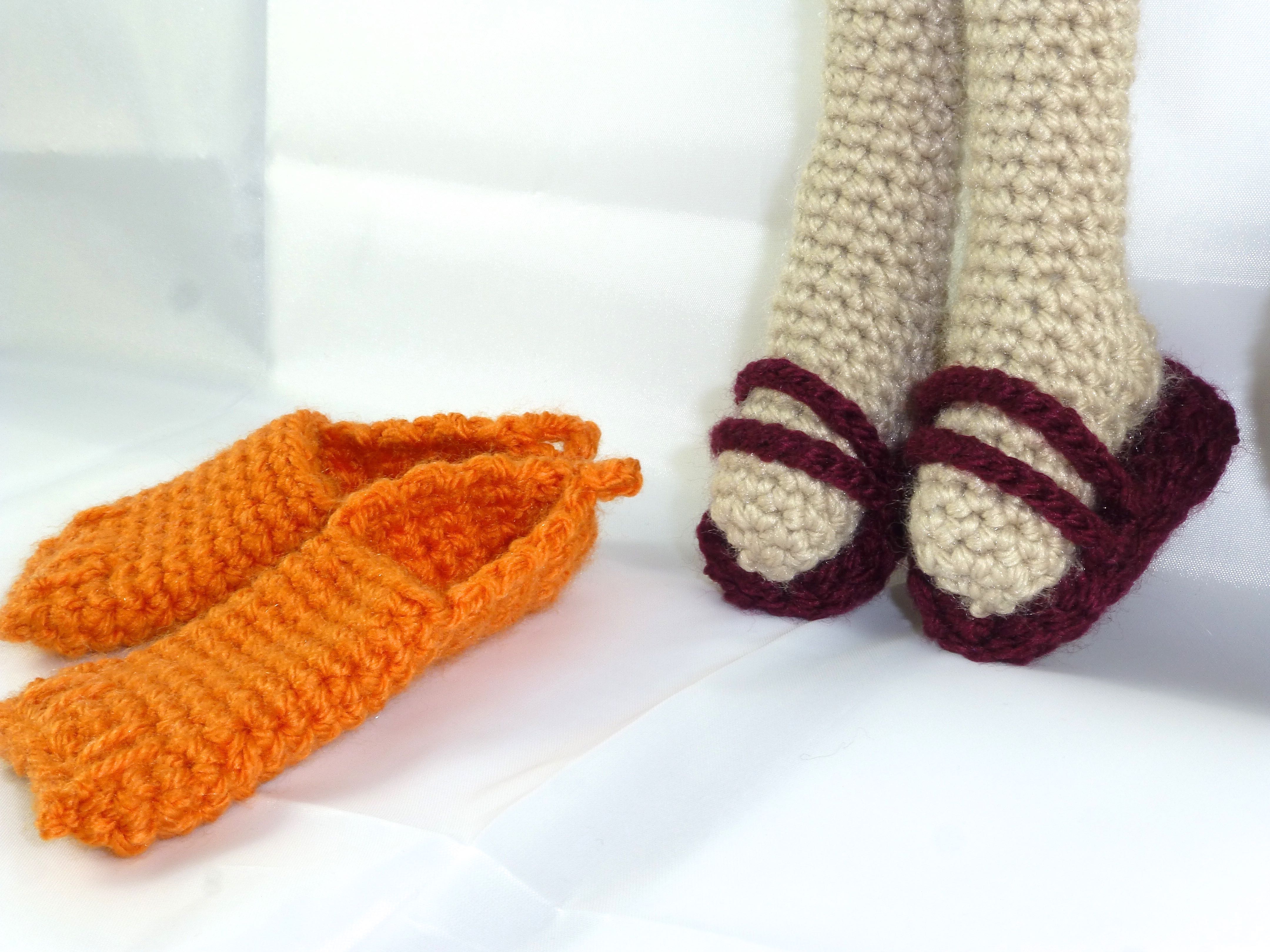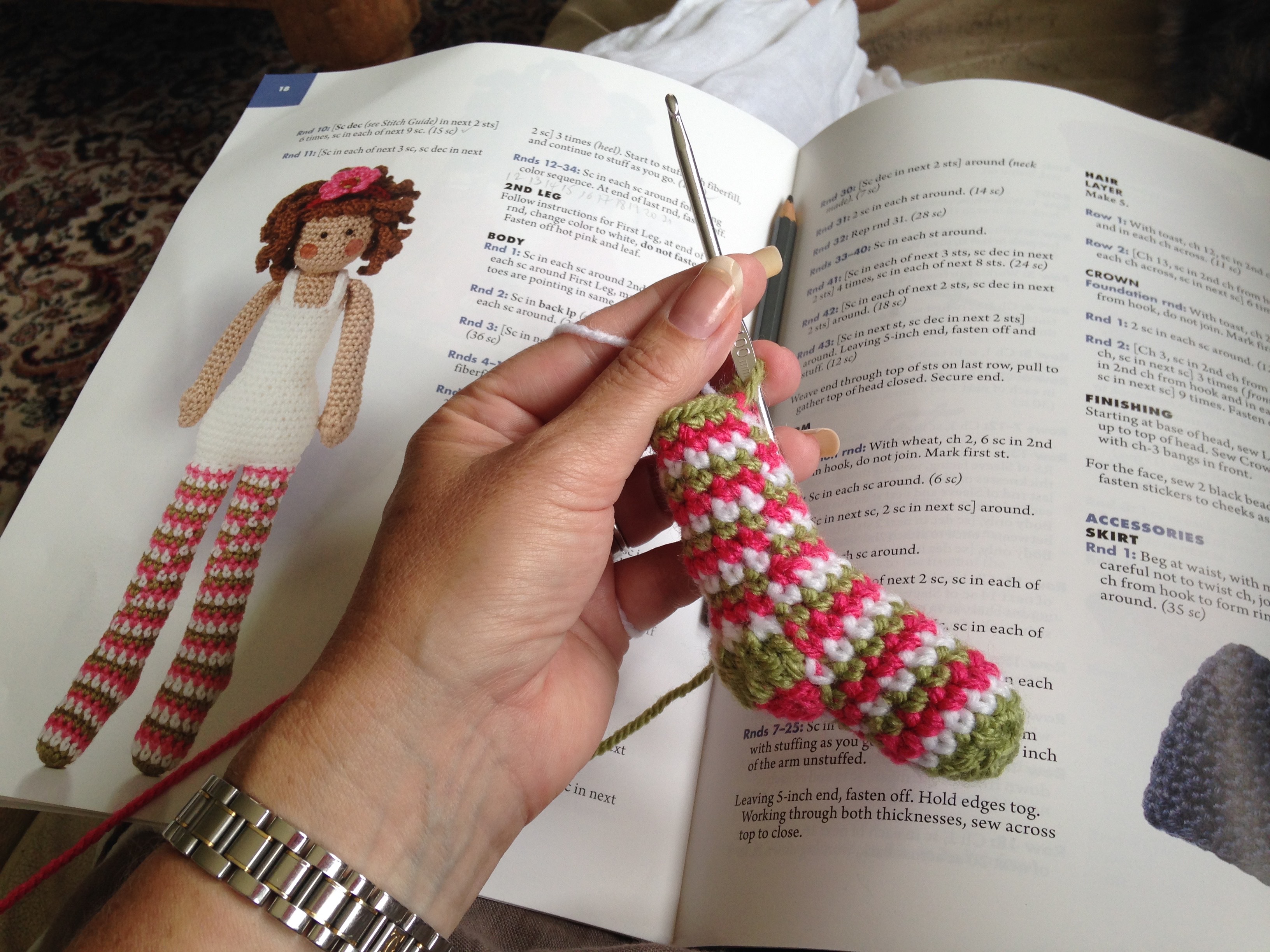 The bodies of all four dolls are constructed the same way – in one piece from the feet up to the head, then attaching the separately crocheted arms at the end.
