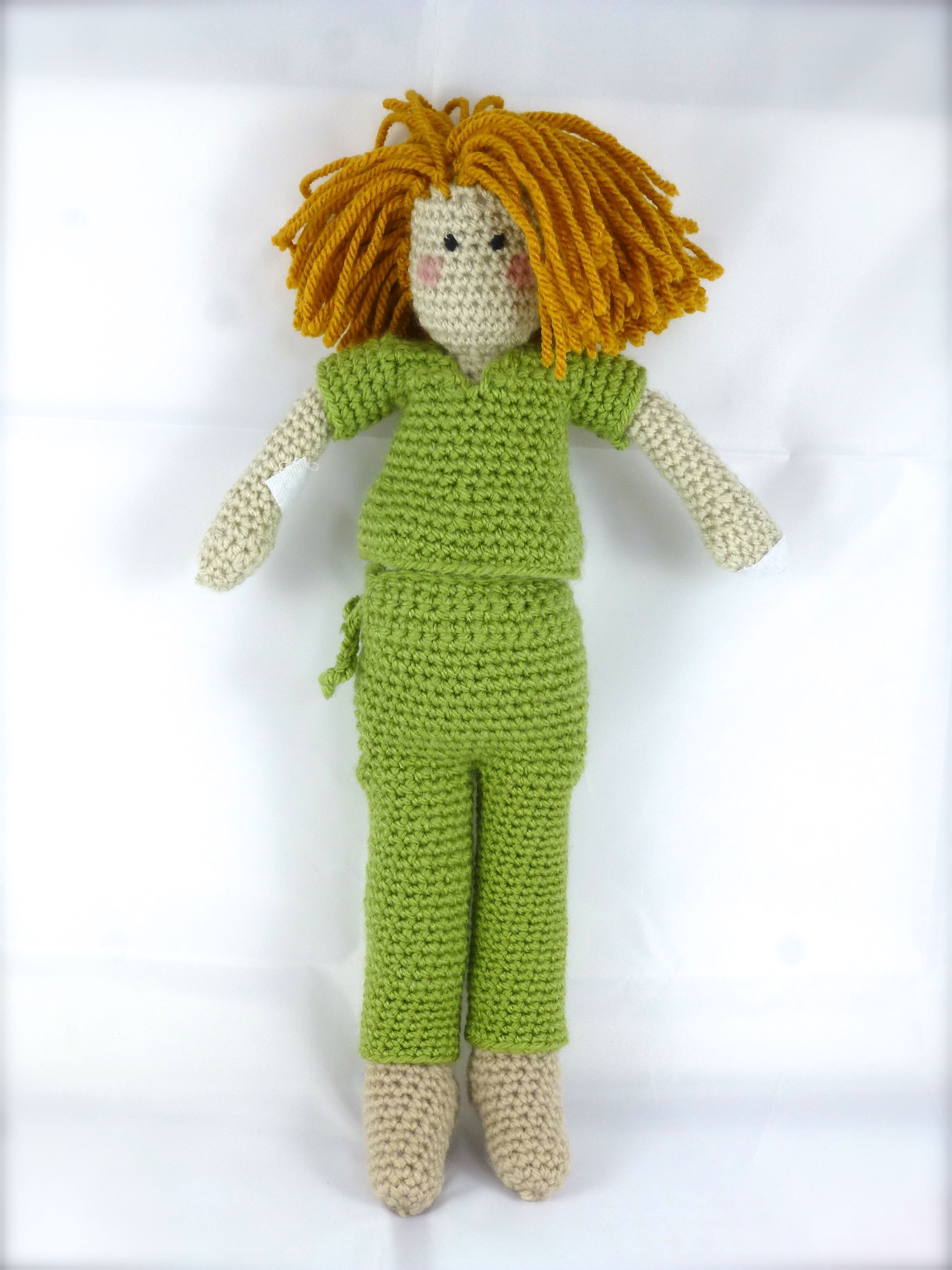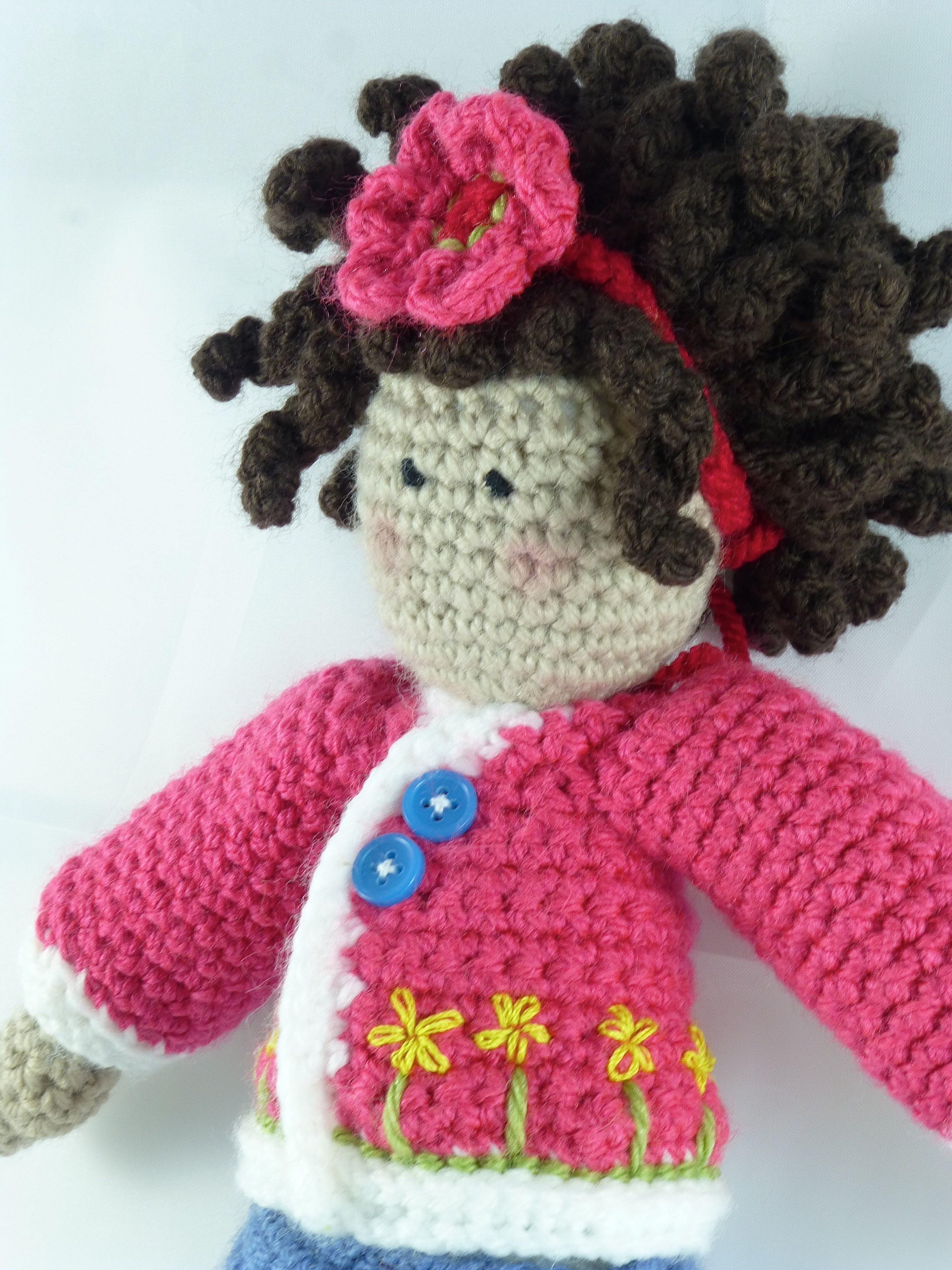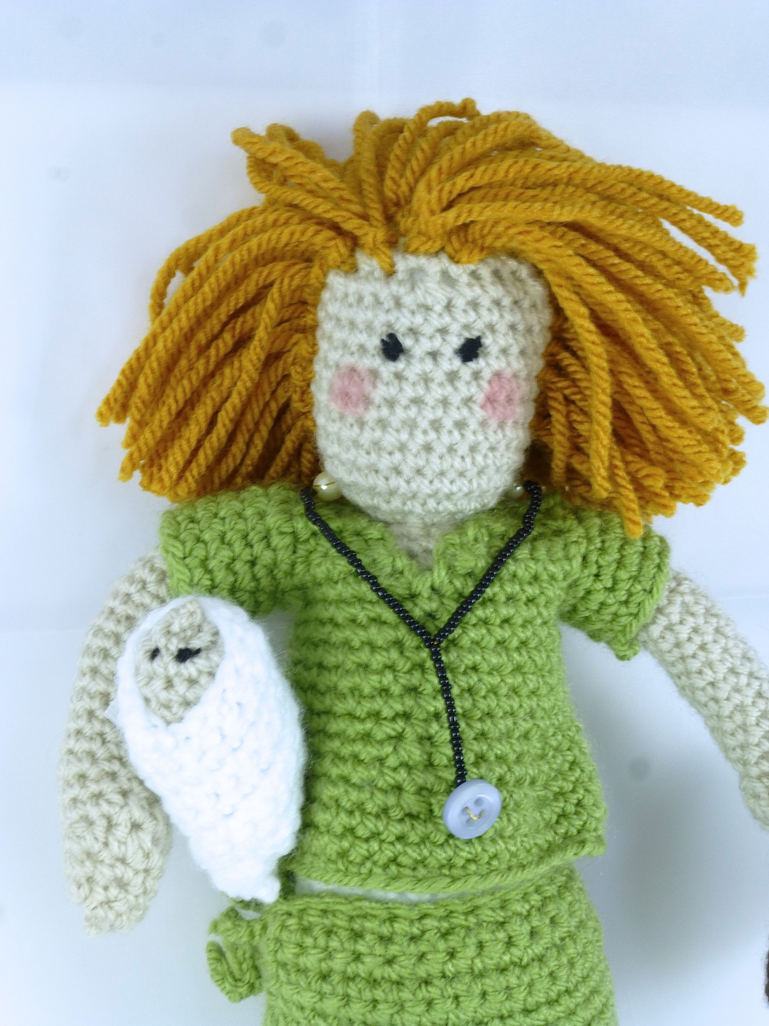 Dani Rae’s hair was the most fun to make and was crocheted in wig format before being stitched on to the head in its entirety. I love the way the hair curls out at the ends – such great design detail.
