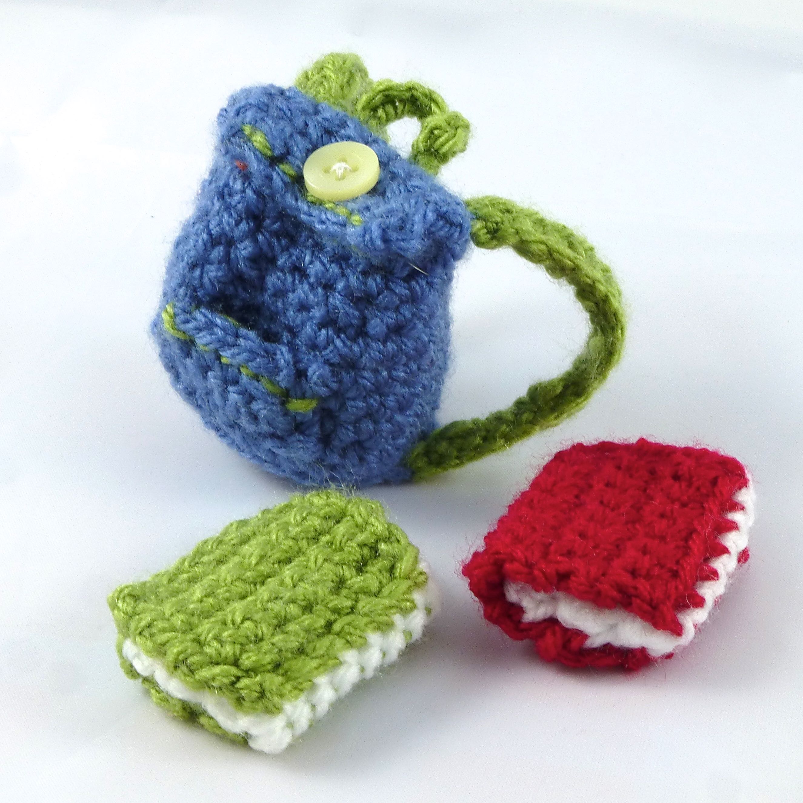 Being a college girl, the obligatory accompanying rucksack even has tiny crocheted textbooks that fit inside!