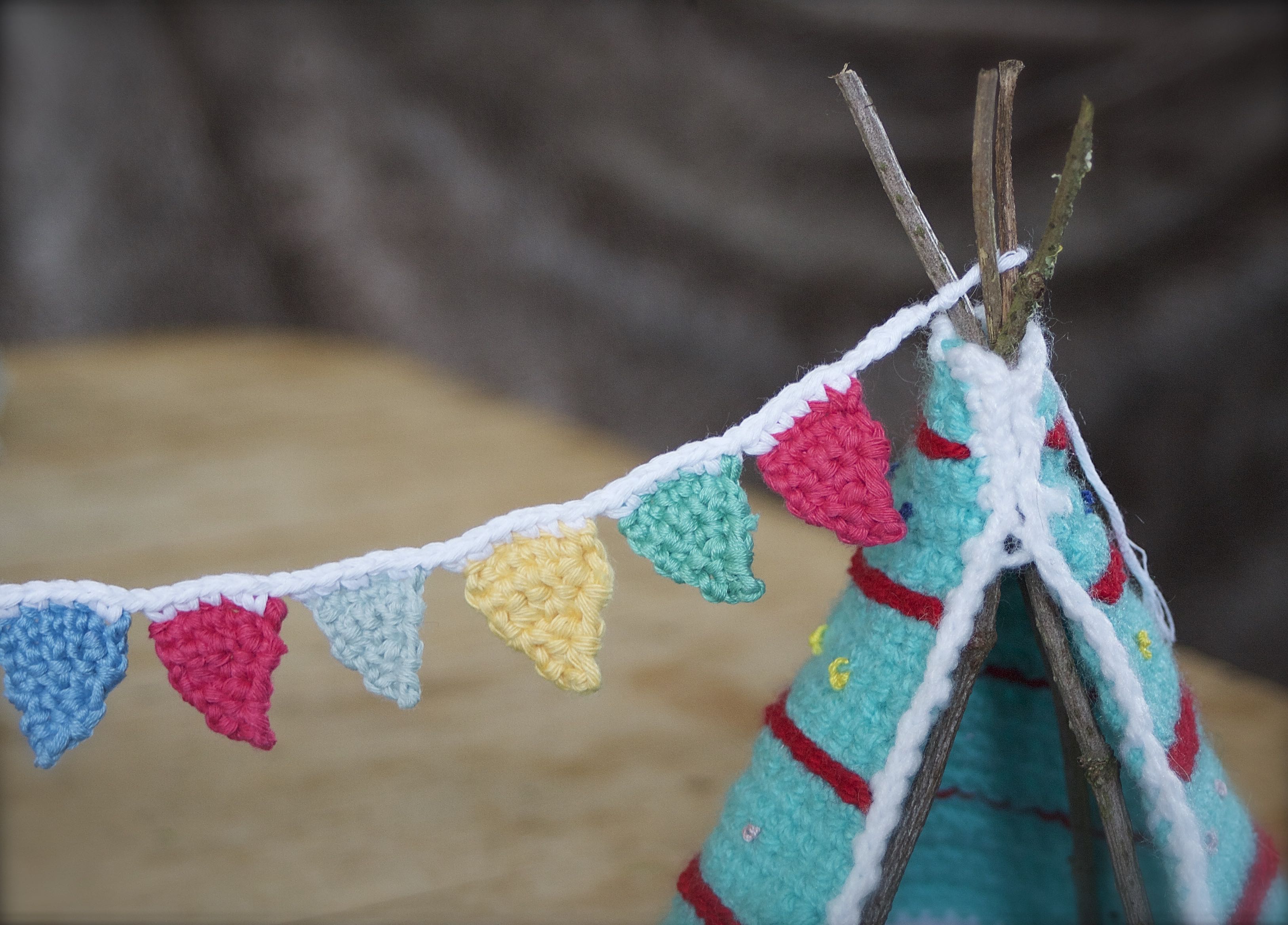 Kate suggests covering wooden skewers or similar with washi tape to use as tent poles, but I improvised with some twigs from the garden which work just as well.