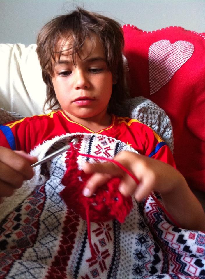 So, when my eight year old son came running in from a tennis tournament, threw his stuff down and said “Now will you teach me how to crochet please?”, I knew the time was right!