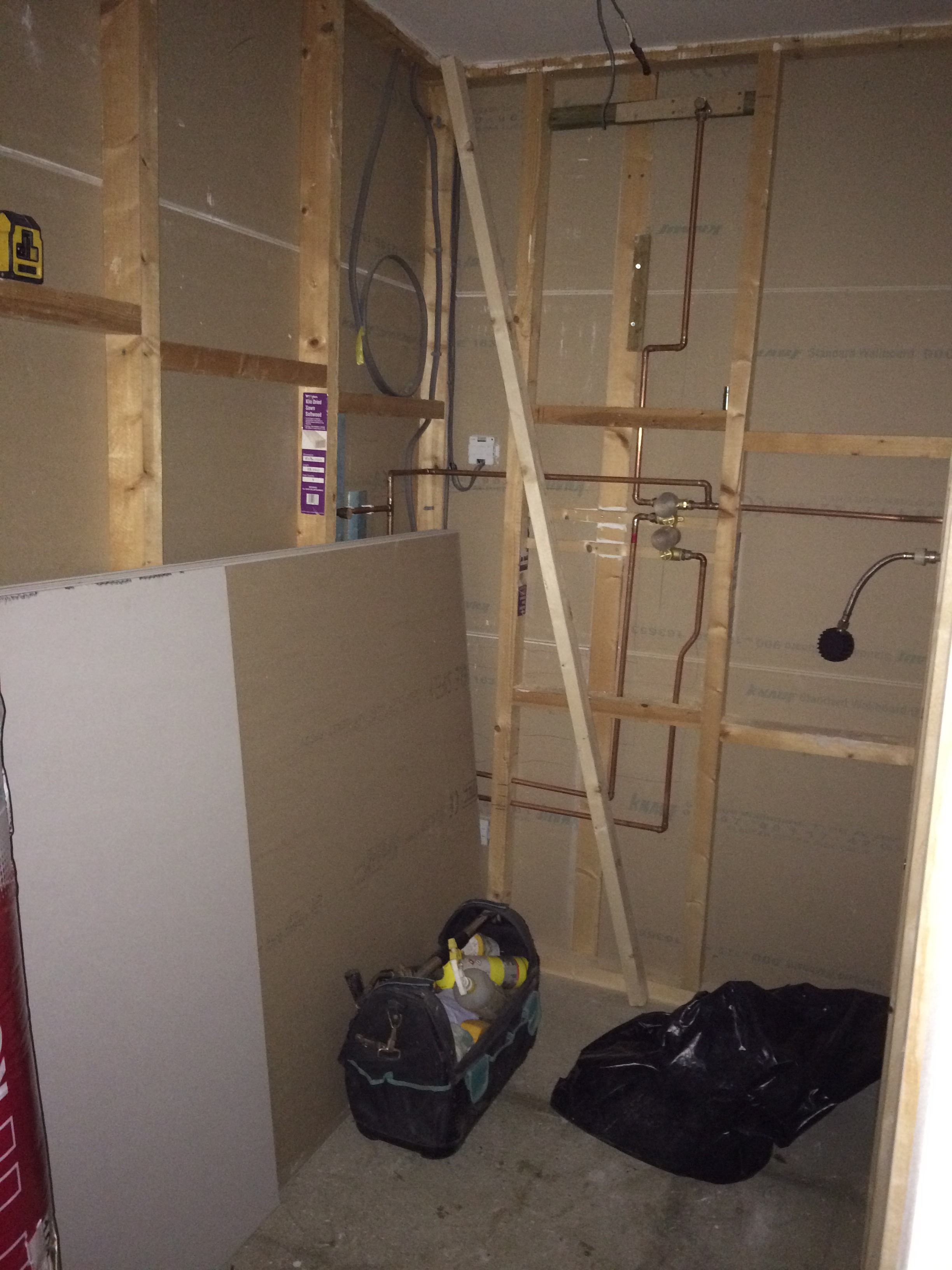 …..the ensuite is in place behind these doors ready to be kitted out.