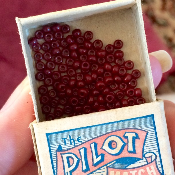 Inside were the tiniest cranberry-coloured beads that will be perfect for lots of different things, the first idea that springs to mind is edging for a crocheted wine glass cover to keep the flies out.