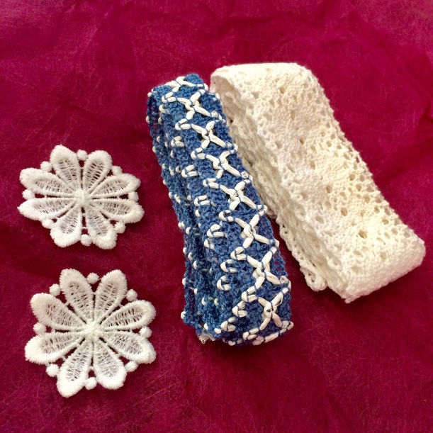 I don’t know what you see when you look at this mix but, add in a bit of vintage lace trim and it screams “Patchwork quilt” to me. No? Well, that’s how my mind works, anyway:)