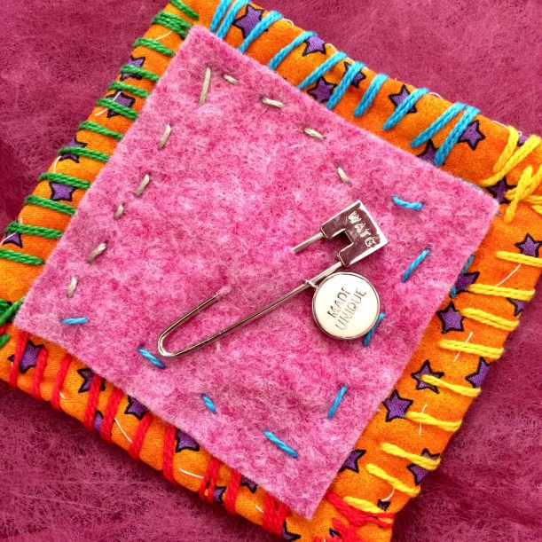 This fabulous ‘safety’ pin was in my Stitching Santa parcel, as was the ‘handmade’ tab.