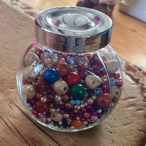 The very next present I opened was this jar filled to the brim with numerous beads in all shapes and sizes. I have a shelf in my sewing room with all my beads and buttons stored in these Ikea jars, so this will sit right next to them.