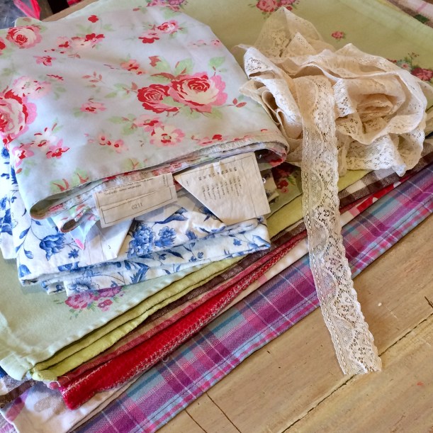Like this pile of (freshly laundered) pillowcases and tea towels, all surplus to requirements and acquired from several different people who know I can’t say no to gifts of leftover/unwanted fabrics.