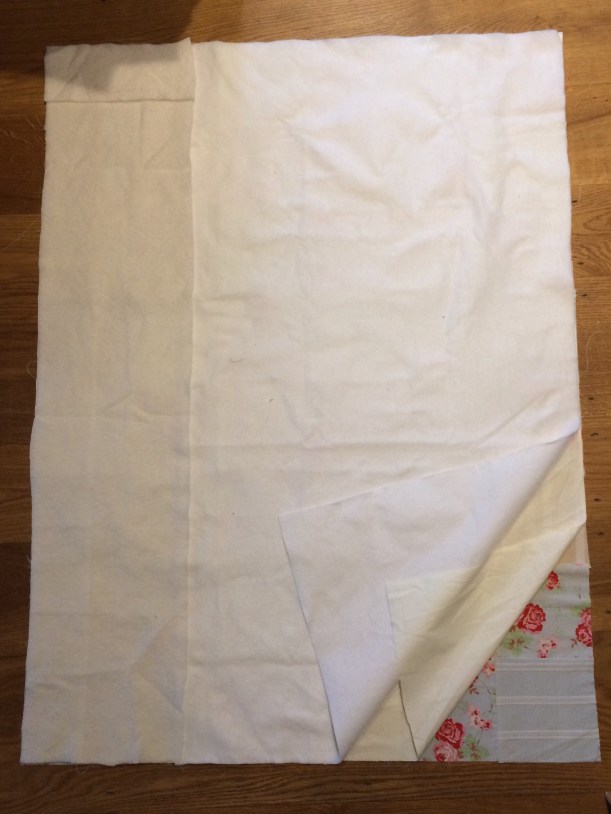 For the backing, I had to piece together bits of wadding and leftover curtain lining to make up the size I needed.