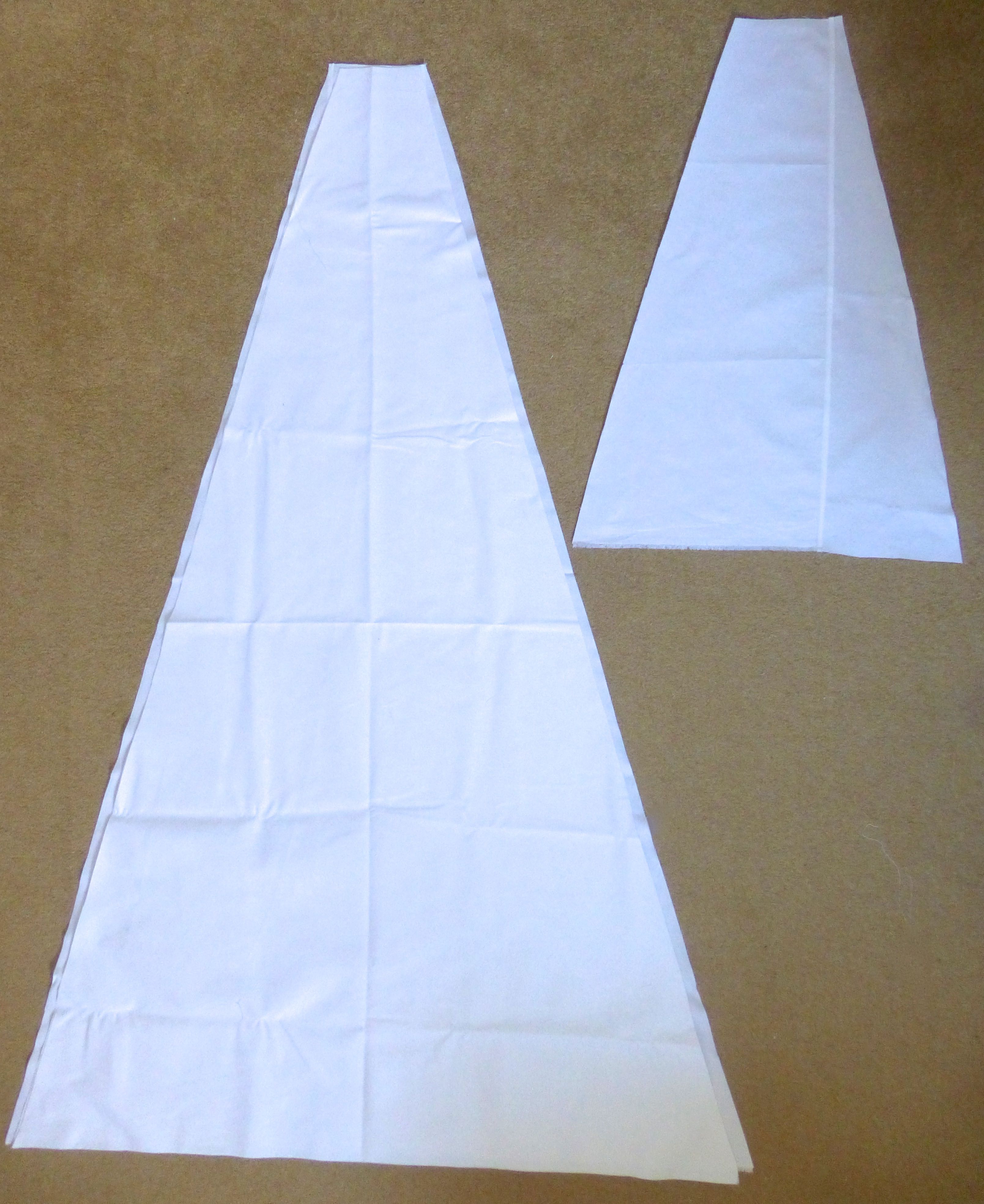 Using the large diagram as a guide, fold your 2 1/2m of white fabric in half lengthwise and cut out as shown.
