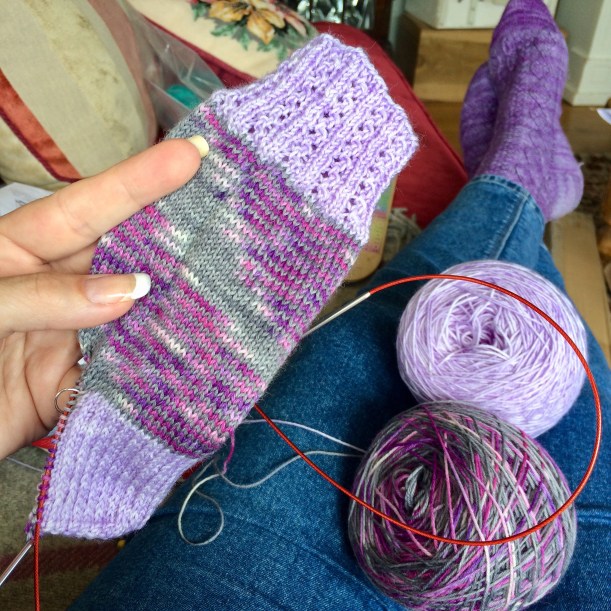 13. On the three hour drive back, I managed to get quite a lot done on the current sock project.