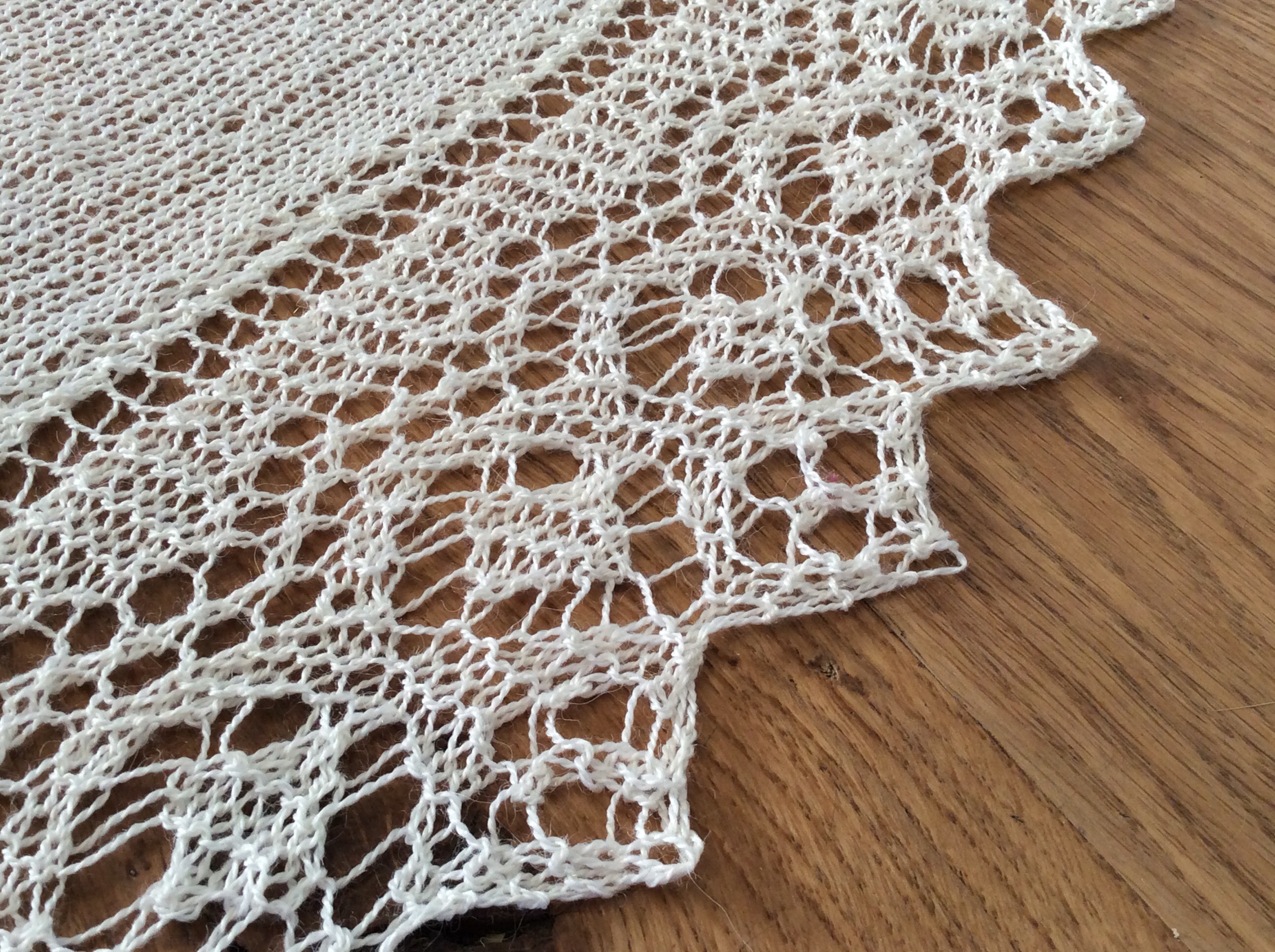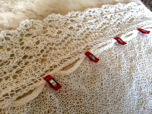 Here’s a close up of the edging after blocking – such lovely lacy detail.