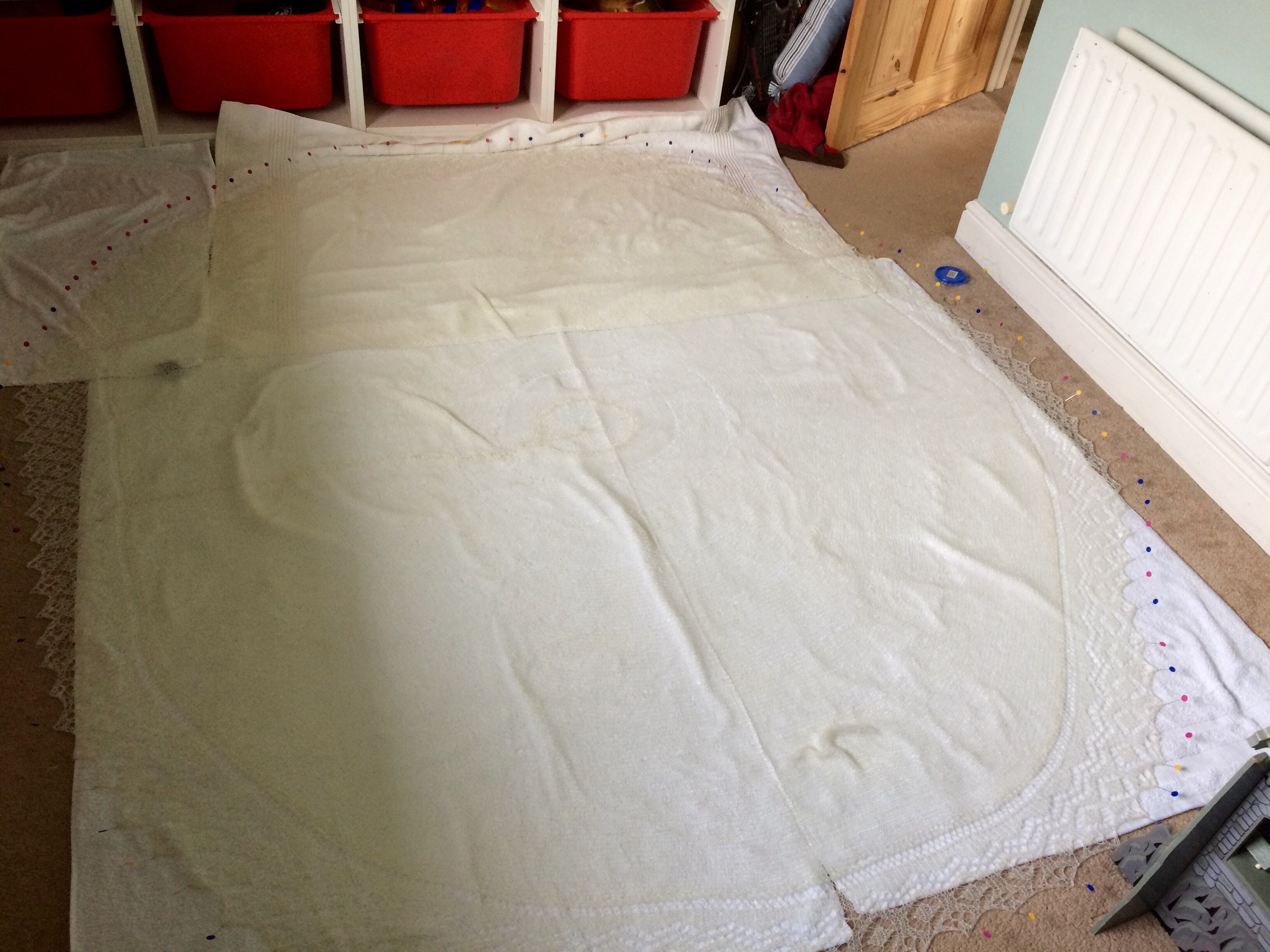 I commandeered The Boy’s bedroom and banished them for two days while it dried, pinned to a combination of three towels and the carpet!