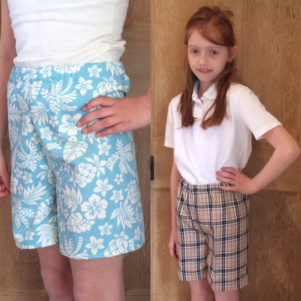 6. Finished in sewing classes this week; one pair of surfer shorts and one pair of tartan wool shorts with turn ups.