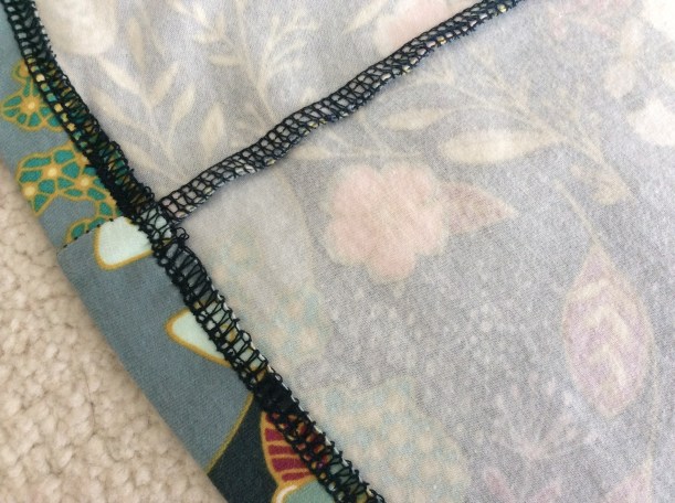 The seams were overlocked, as were the raw edges. Although, strictly speaking, there is no need to finish the raw edges on knit fabrics like this.