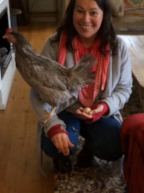 5. Just two hours after bringing home two new hens, one of them came into the house, hopped onto my lap and laid an egg!