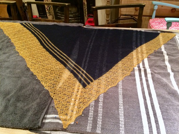 7. I finished off the Belaggio shawl and blocked it.