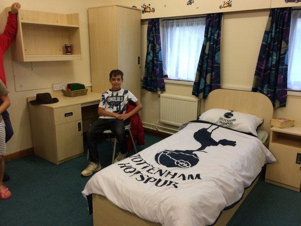 5. The next day we took No.2 Son to his new school – here he is in his part of the dorm with the obligatory football team duvet set.
