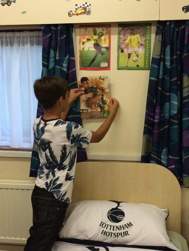 6. He soon made himself at home, putting up posters above his bed. We haven’t seen home in two weeks now and, as we decided not to give him a mobile ‘phone, have only spoken to him twice.