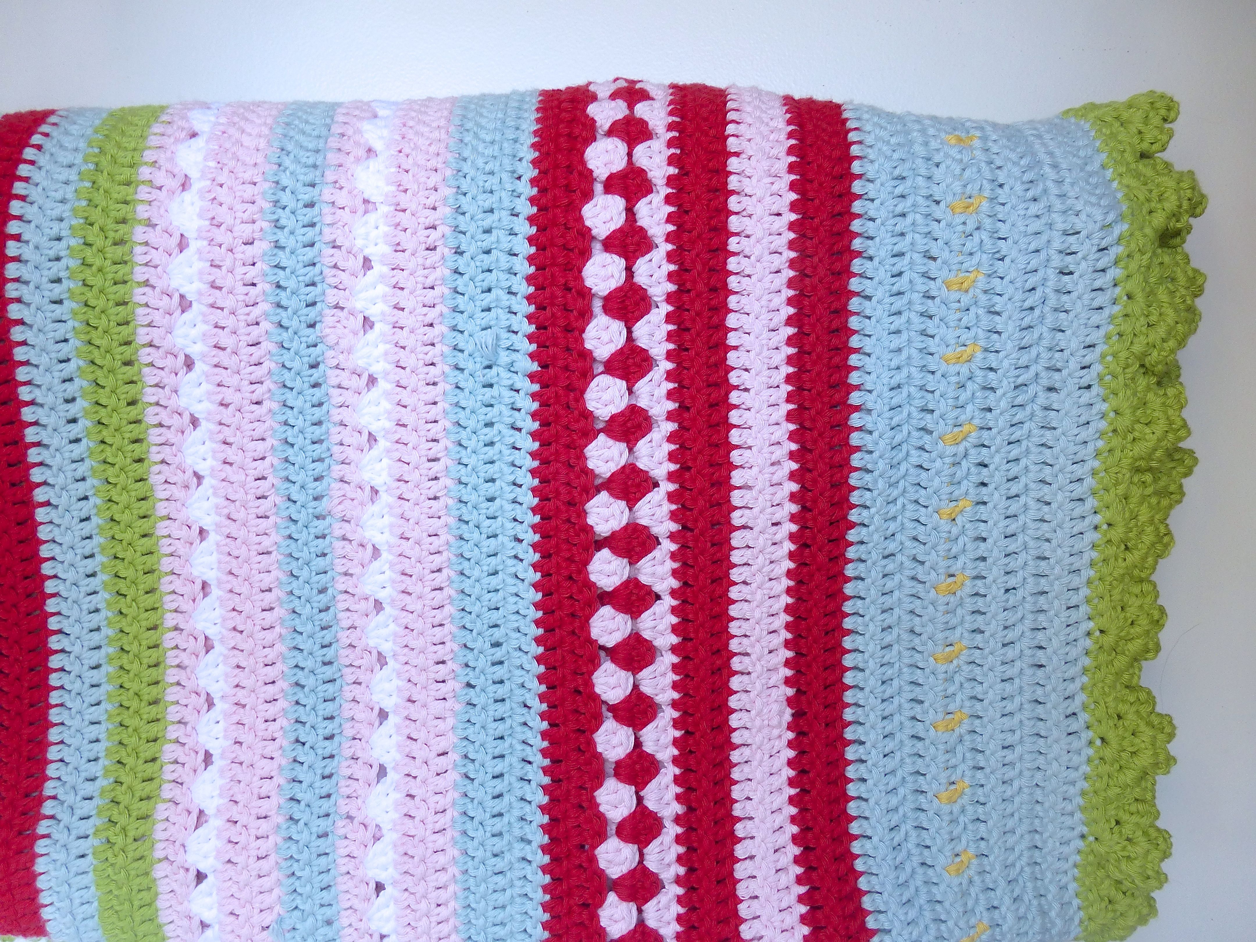 Whilst it may look complicated and rather daunting, the main body of the blanket actually consists of nothing other than treble crochet (US double) in plain rows and granny stripe. It’s the winning combination of colours that make it so successful.