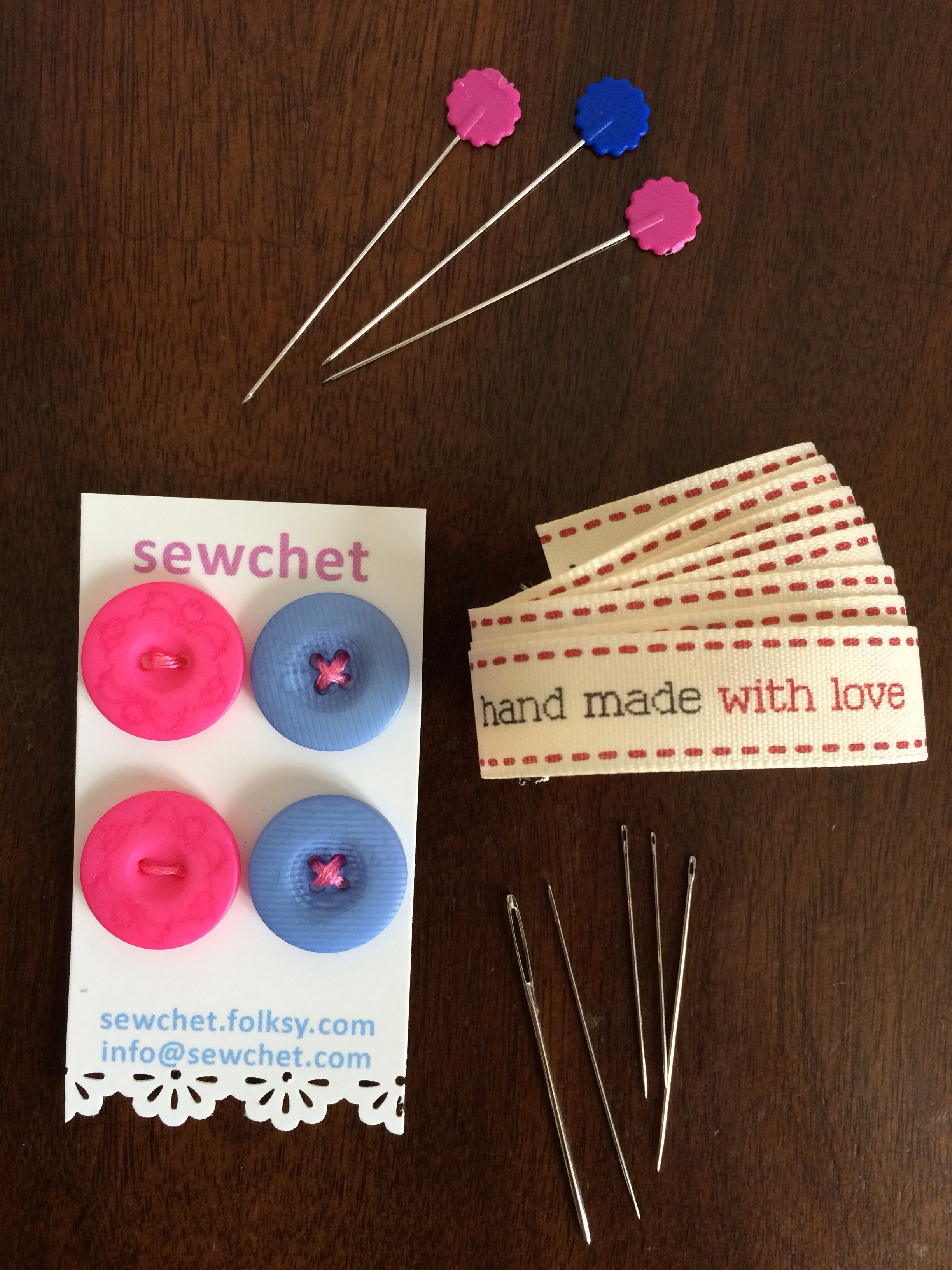 Including some “Handmade With Love” labels, buttons, pins and needles (all from my own supplies) will make the sewing kit more complete.