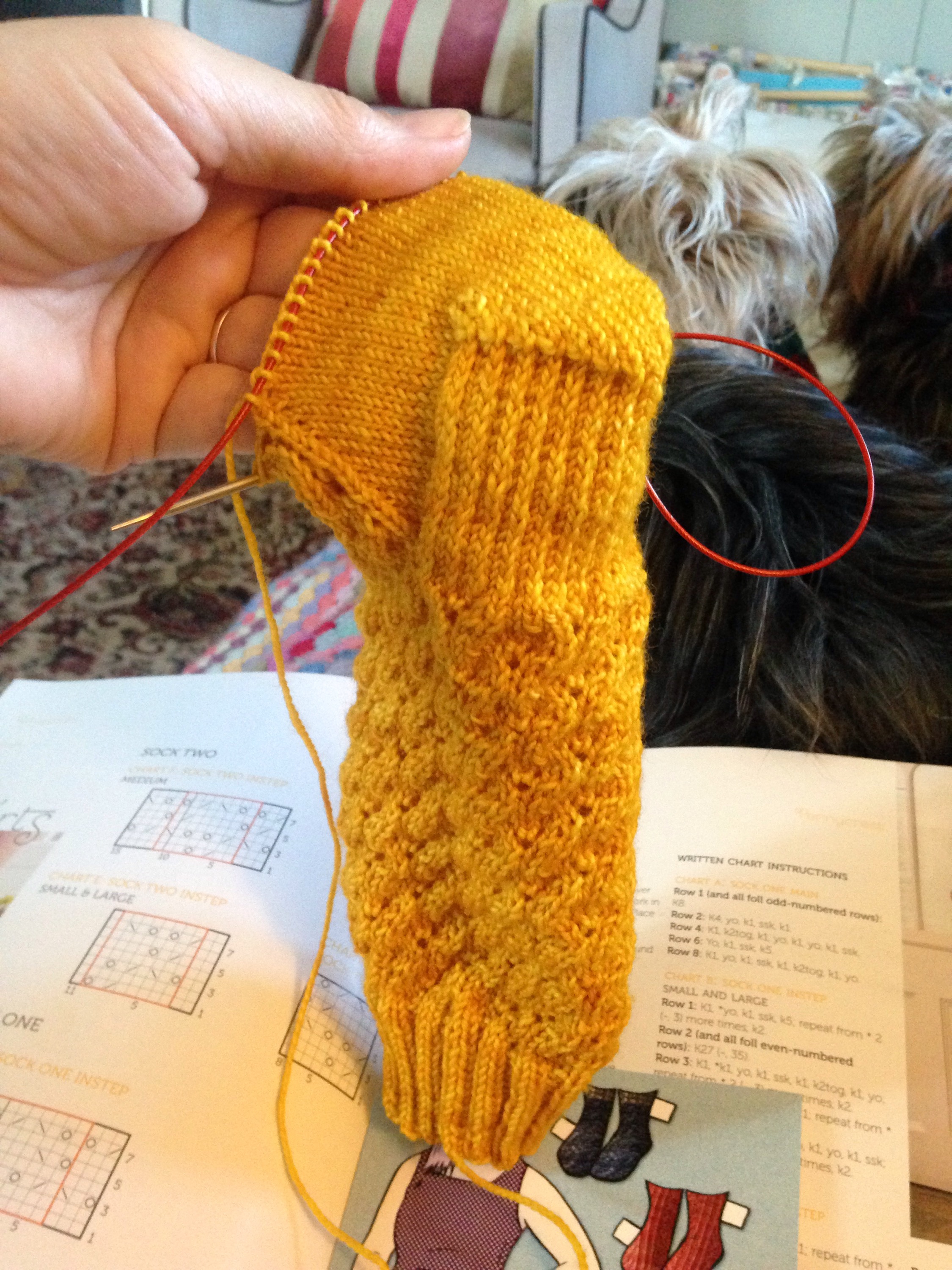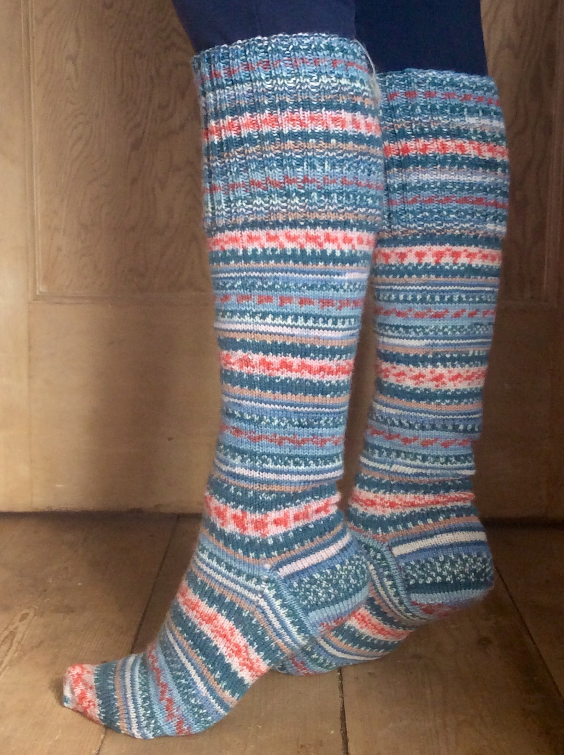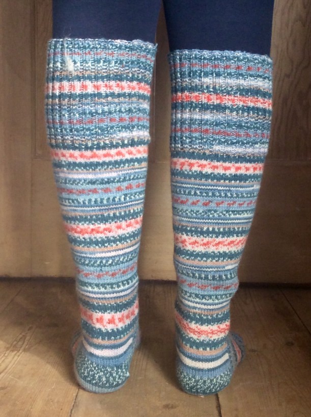 9. No sooner were they off the needles, than they were on my feet. We stayed at a friend’s house and Tess made herself at home in their dog’s basket. I had a massive hangover at the point this photo was taken – I woke up the next morning still fully dressed and the only thing that could make me smile was looking at my lovely socks:)