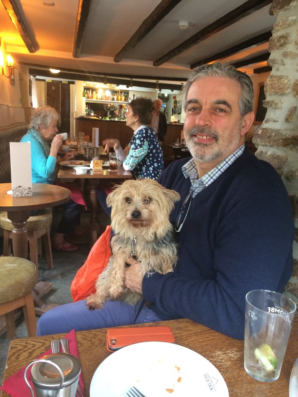 3. Another day, another walk, this time it was cold, but dry and sunny. We sat next to the pub fire and had lunch. Tess always gets as close as she dare.