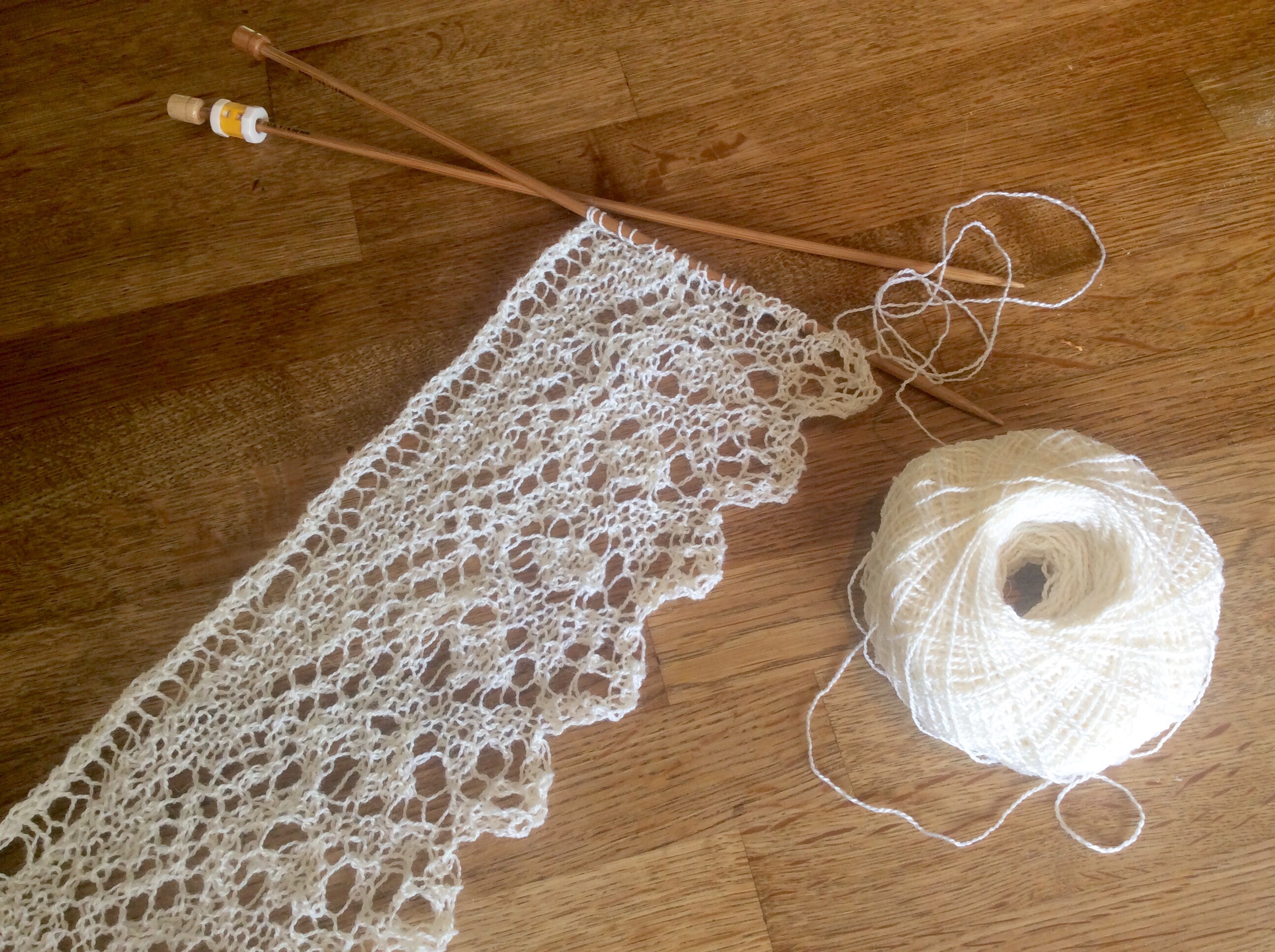 1.  Working on the lacy border for the Baby shawl commission that I’ve been slogging away at for a few months. Baby was due yesterday and I’ve run out of time! Trouble is, I get a numb bum if I sit for more than two hours at a time, so I can’t knit it any faster.
