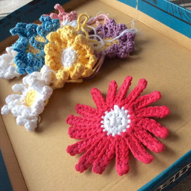 3. I finally got around to buying some spray starch for all those crocheted daisies that I made back in July. What a difference it makes. These are going to be a garland for my upcycled oak dresser.