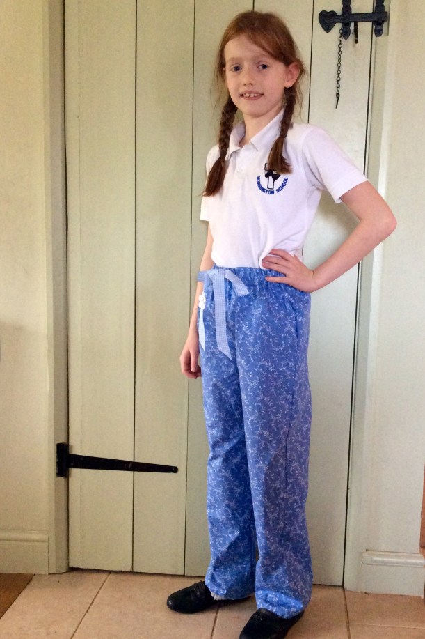 3. This little girl finished her pyjamas on Thursday and has worn them every night since – she even went home in them after posing for this photo!