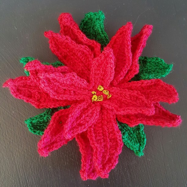 2. A crocheted Poinsettia brooch was whipped up in an evening and found its way into one of my Stitching Santa parcels.