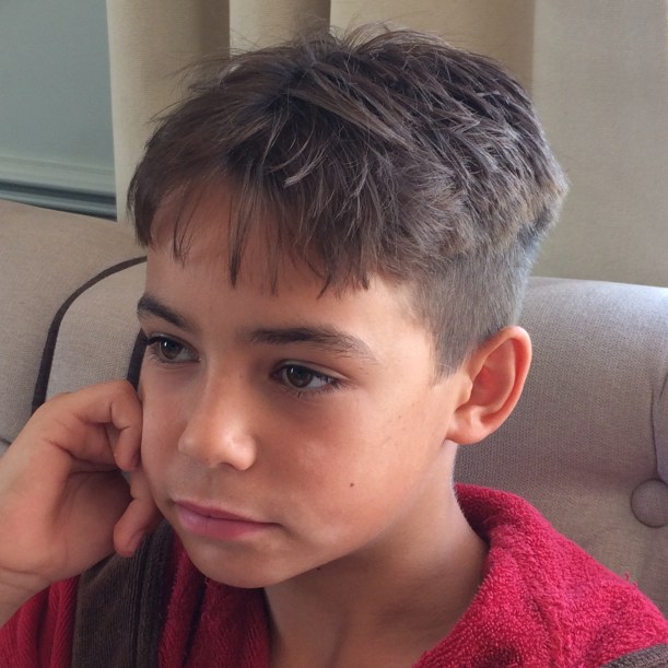 7. The school does all his washing so I had no idea how small his trousers had got until he tried them on for me. He’s been wearing them like this for months and kept ripping the arse out of them – no wonder! His little brother is wearing the other pair and shows how they used to fit just eight months ago!