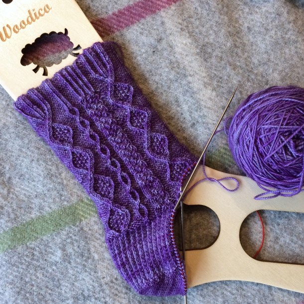 17. Before casting on the second sock, I cast on one for me using some Fyberspates yarn that I’ve had for a while and forgot about. After all that plain sock knitting, I was itching to do a pattern.