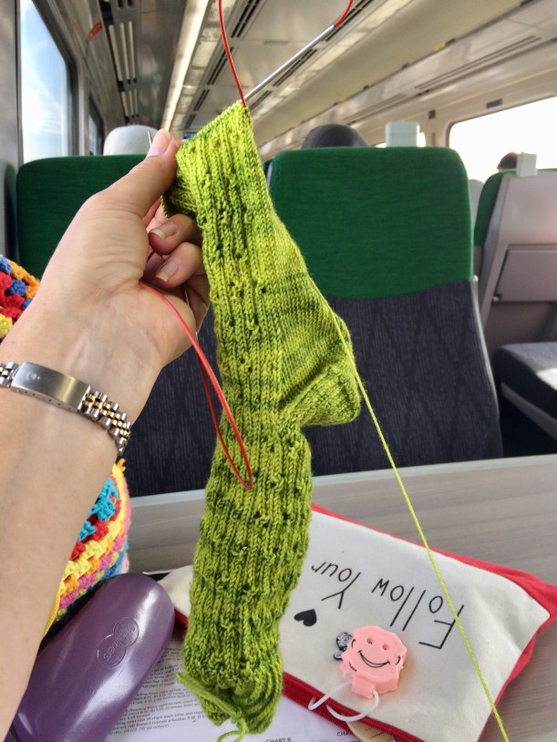 22. And then I left hubby to deal with the B+B guests while I hopped on a train “oop North”. The first leg of the journey up to Bristol was great and I managed an hour’s uninterrupted sock knitting…..